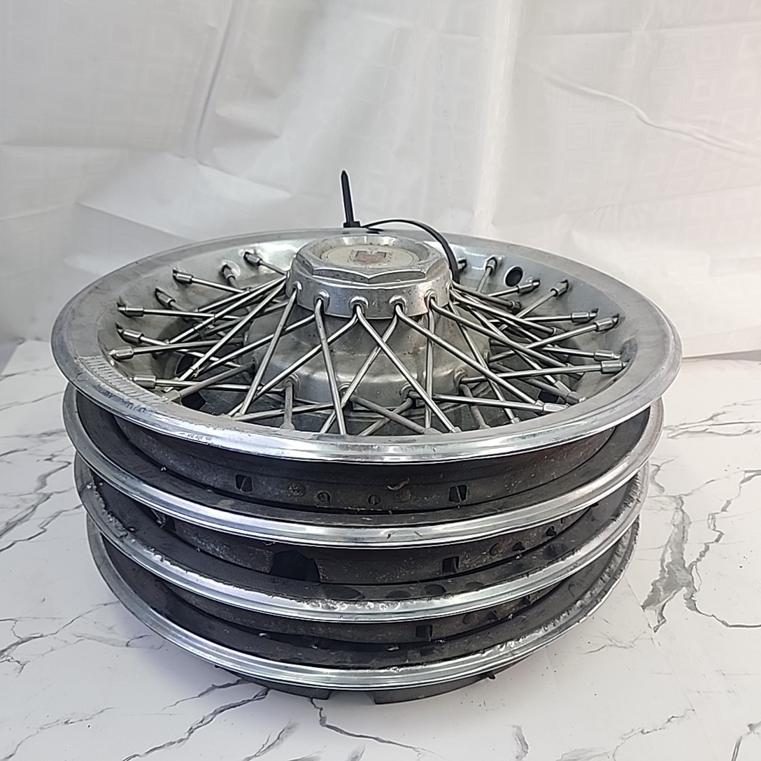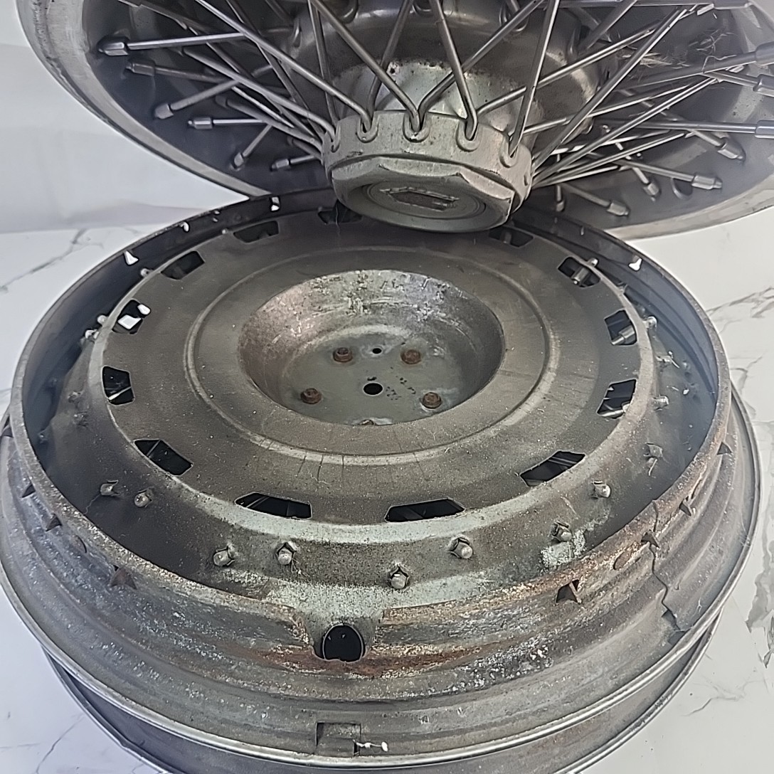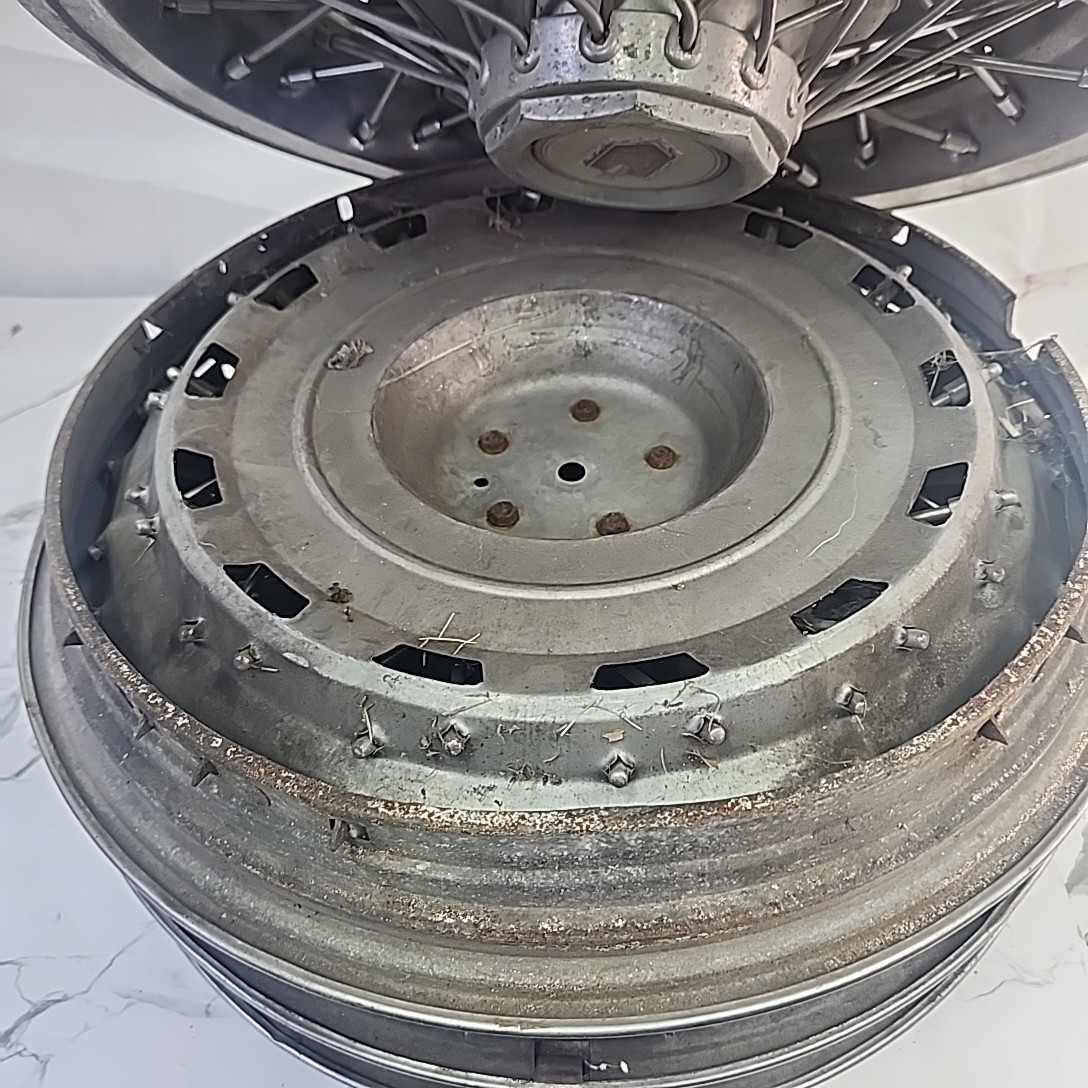 Exact item set is shown. In good used condition, some surface wear and scratches/dents. Mounting rings are intact. Inner diameter 13 inches. Outer diameter 15 inches. Set weight 20 lbs. Made in USA. No returns on partial sets. Please review our business policies in our store for information regarding returns, shipping and warranties.