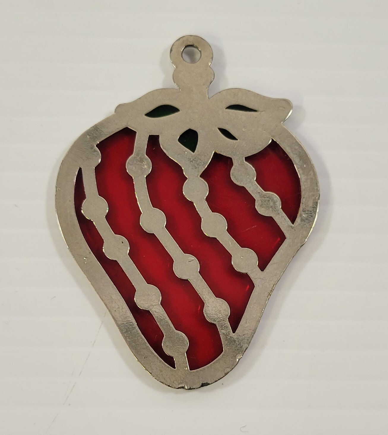 MM) Vintage Suncatcher Stained Acrylic Glass Strawberry Hanging Ornament