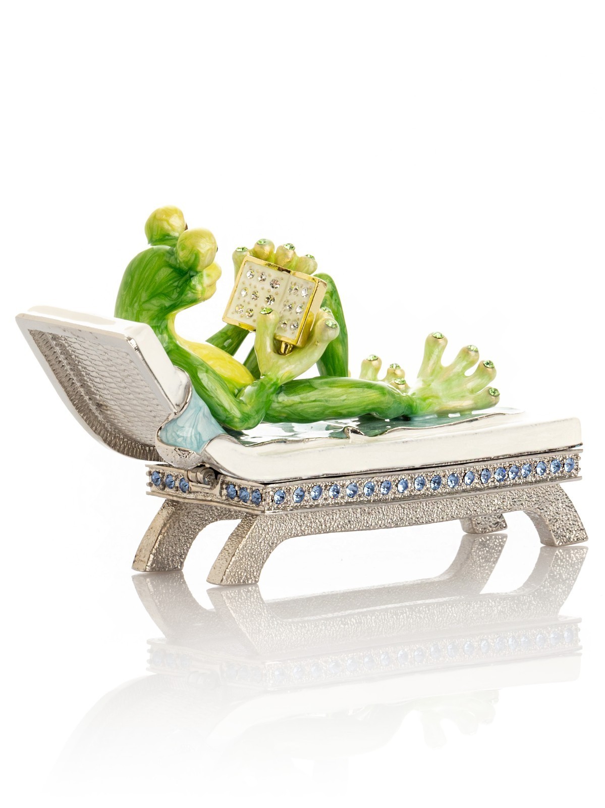Keren Kopal Frog Reading hand made Trinket Box Decorated with Austrian Crystals