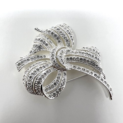 Vintage Napier Silver Tone Rhinestone Brooch Bow Ribbon Pin NOS In Original Box