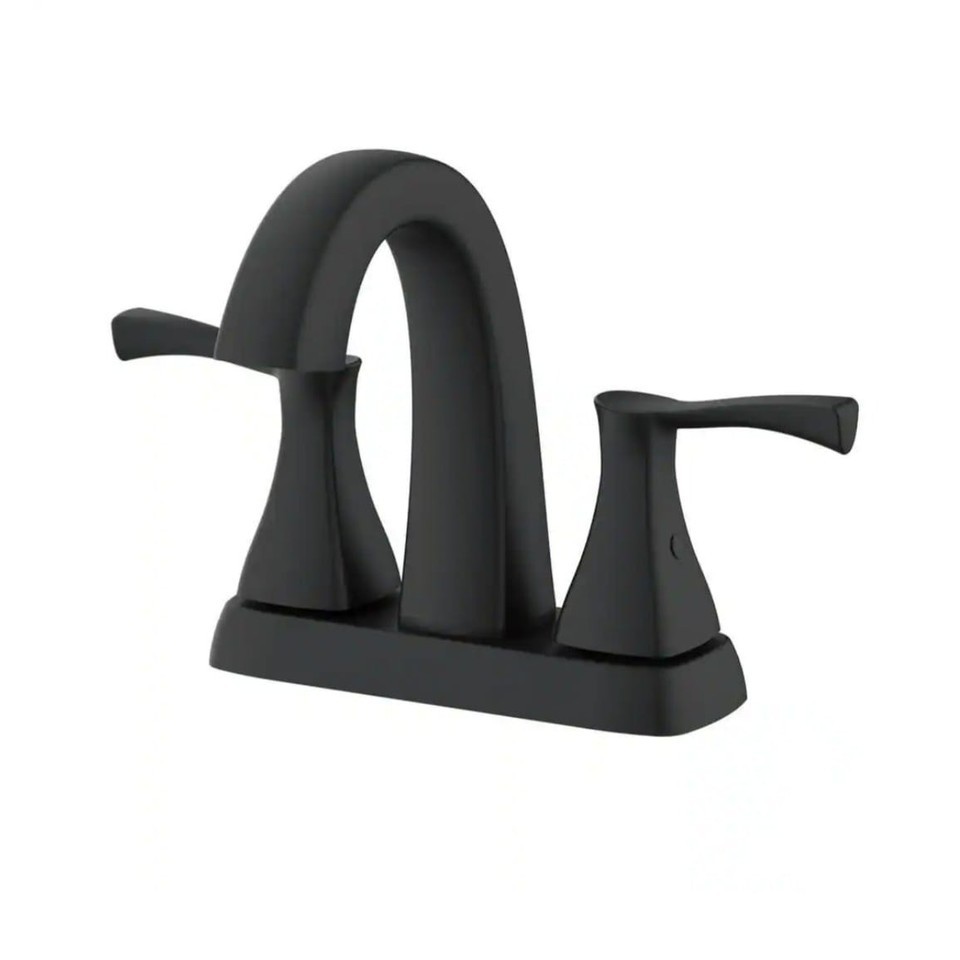 New Open Box Glacier Bay Calandine Matte Black Bathroom Faucet 2-Handle Drain Kit
