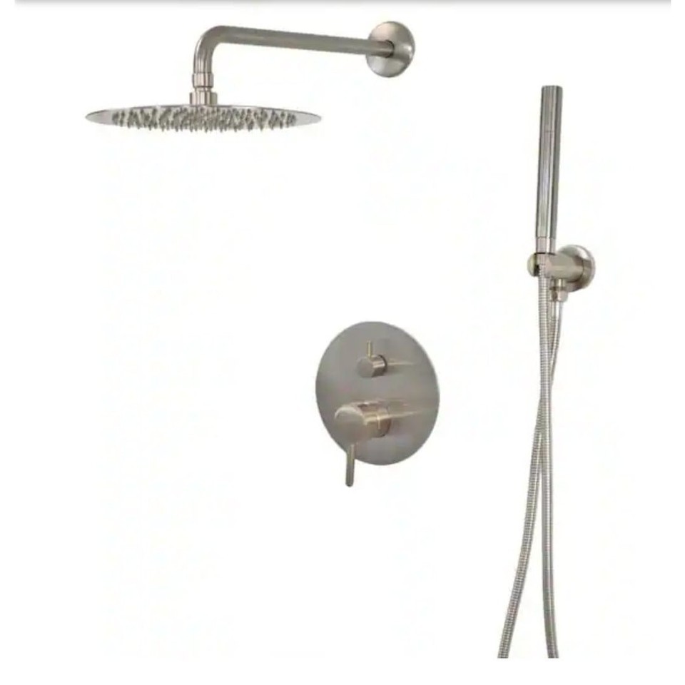 Mackenzie 1-Spray Patterns 8 in. Showerhead Face Diameter, Wall Mounted Dual Shower Heads in Brushed Nickel