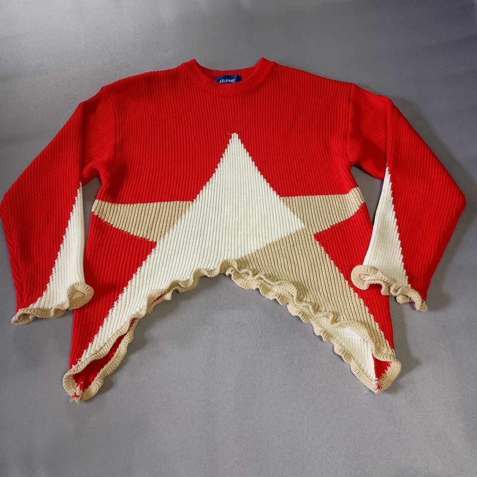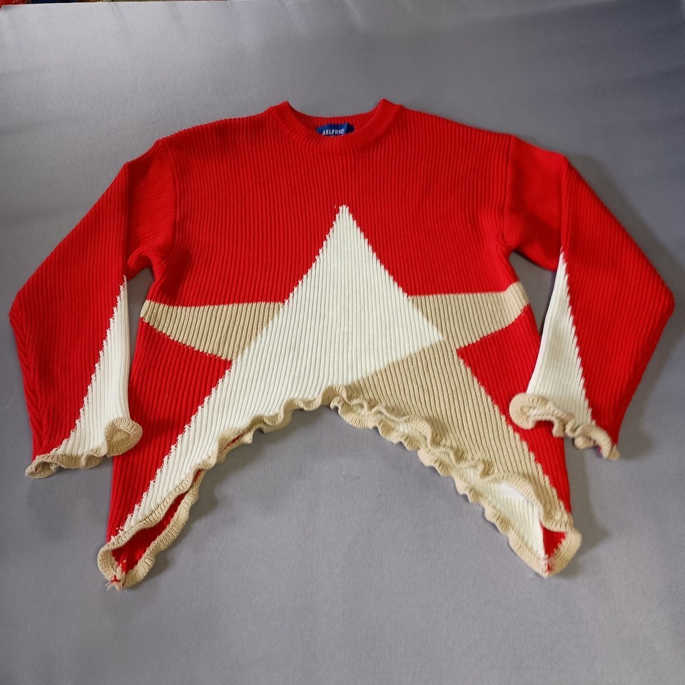 Aelfric Eden Star Hem Sweater Oversized Small Colorful Red White Tan Pattern