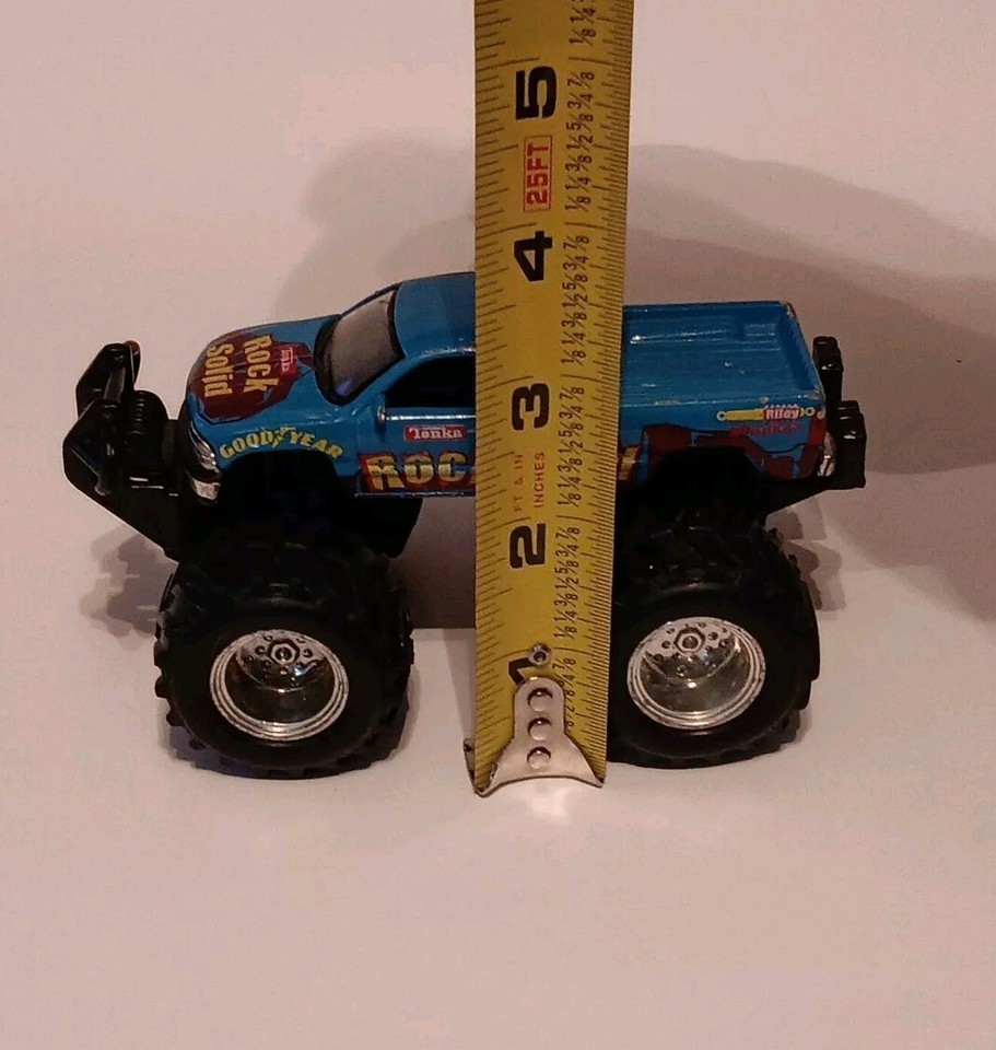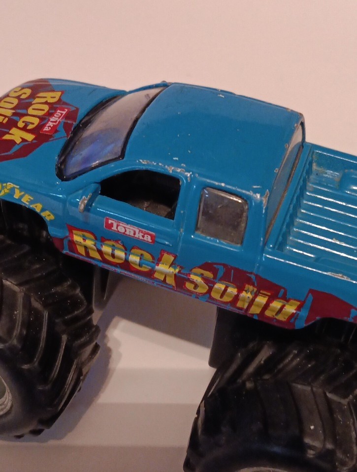 This limited edition Tonka Monster Truck, titled "Rock Solid," is a must-have for any collector or fan of monster trucks. Made by Hasbro and Maisto in 2001, this blue Chevrolet Monster Truck features Riley Shockes and is approximately 5" x 3". The truck is recommended for ages 5 and up, but please note that this toy does have small parts. Add this rare find to your collection today! This is a pre-owned item with normal wear. See Pictures