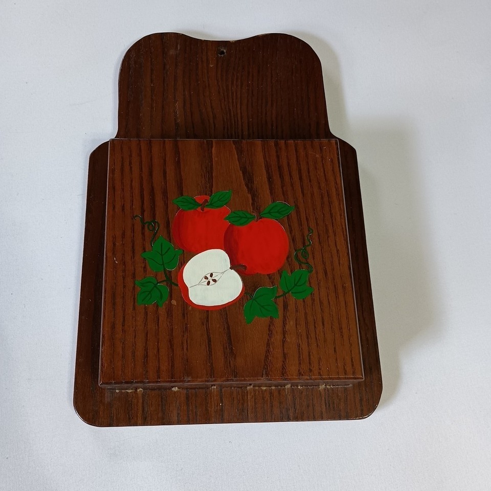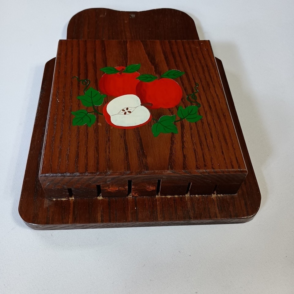 Vintage Wooden Knife Holder Block Colorful Handpainted Apples Theme Wall Mount