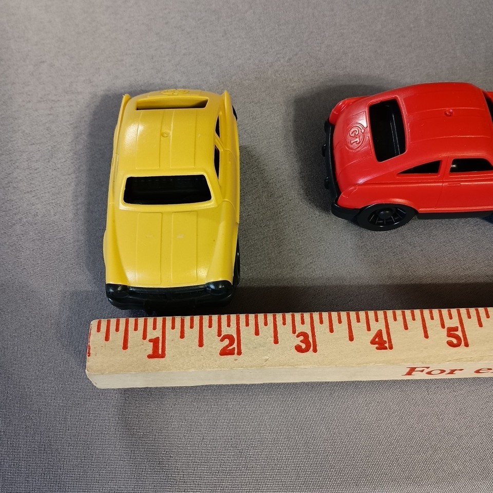 The Green Toys Yellow and Red Cars are made in the USA from recycled plastic. This set of toy vehicles is perfect for children aged 4-7 who love playing with cars. The bright red and yellow colors and durable plastic material make these cars a fun and long-lasting addition to any toy collection. Made with quality and care in the United States, these Green Toys cars offer hours of imaginative play for young children. Normal wear, sizes are approximate.