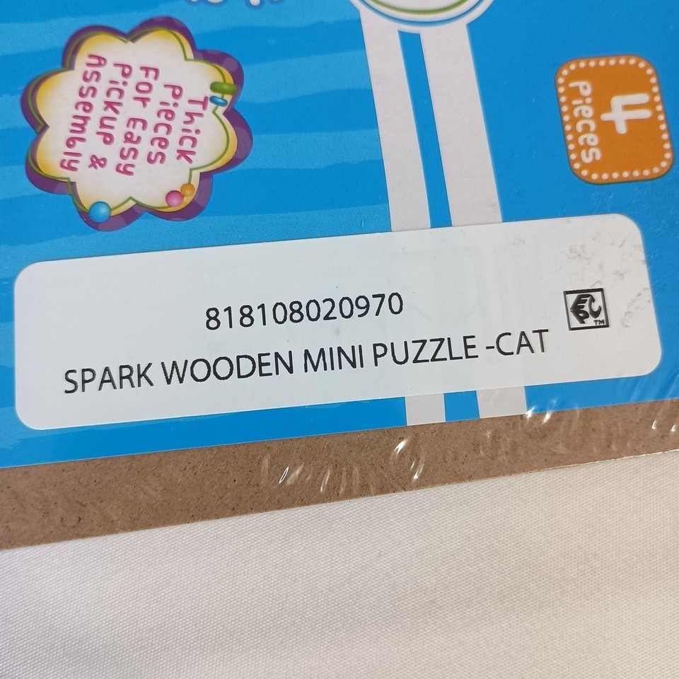 2 Spark Wooden Mini Puzzles Dog And Cat an early educational toy designed to enhance hand-eye coordination, problem-solving skills, motor skills, sequencing abilities, and creativity in children aged 12-18 months. This multi color puzzle features a dog design and is made of wood, making it durable and safe for young children to play with. The toy is recommended for both boys and girls. With its engaging and developmentally beneficial features, this puzzle is a great choice for toddlers to have fun while learning. This item is new in factory sealed plastic.