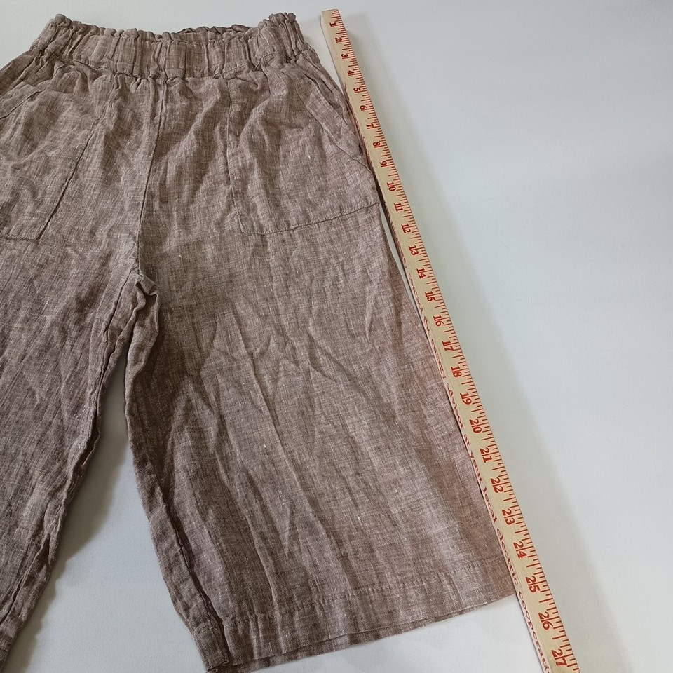 The OK Len Ok LINEN Women's Pants in size XS are a stylish addition to any summer wardrobe. These cropped wide-leg pants in a light brown color are perfect for a casual, beachy look. Made from breathable linen material, they feature a pull-on closure and a relaxed fit. Perfect for pairing with your favorite tops and sandals for a chic and comfortable outfit. Normal wear.