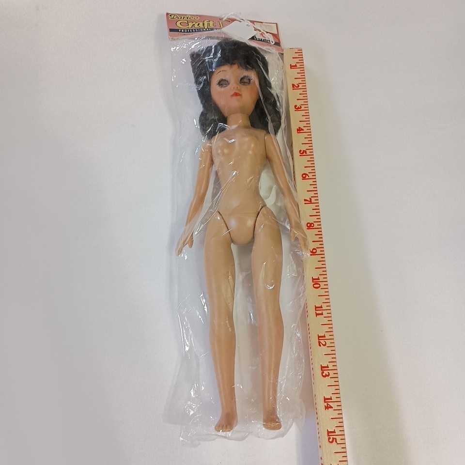 This vintage Darcie doll is a beautiful representation of Native American culture. With black hair and brown eyes, this 15-inch fashion doll is made of plastic and comes with shoes. The doll is in its original packaging. The set includes one doll and is perfect for collectors or doll enthusiasts. The doll's height is 15 inches, and it is a girl doll. The doll's ethnicity is Native American, and it is an original piece. This doll is a must-have for anyone who appreciates the beauty of Native American culture. This item is new old stock in the package with some wear to the packaging. See Pictures