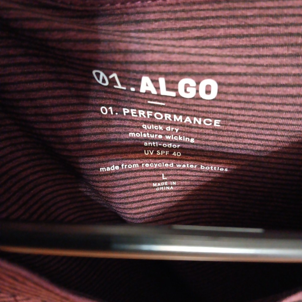 01. Algo T Shirt Mens L Maroon Striped V-Neck Performance Quick Dry SPF Athletic
