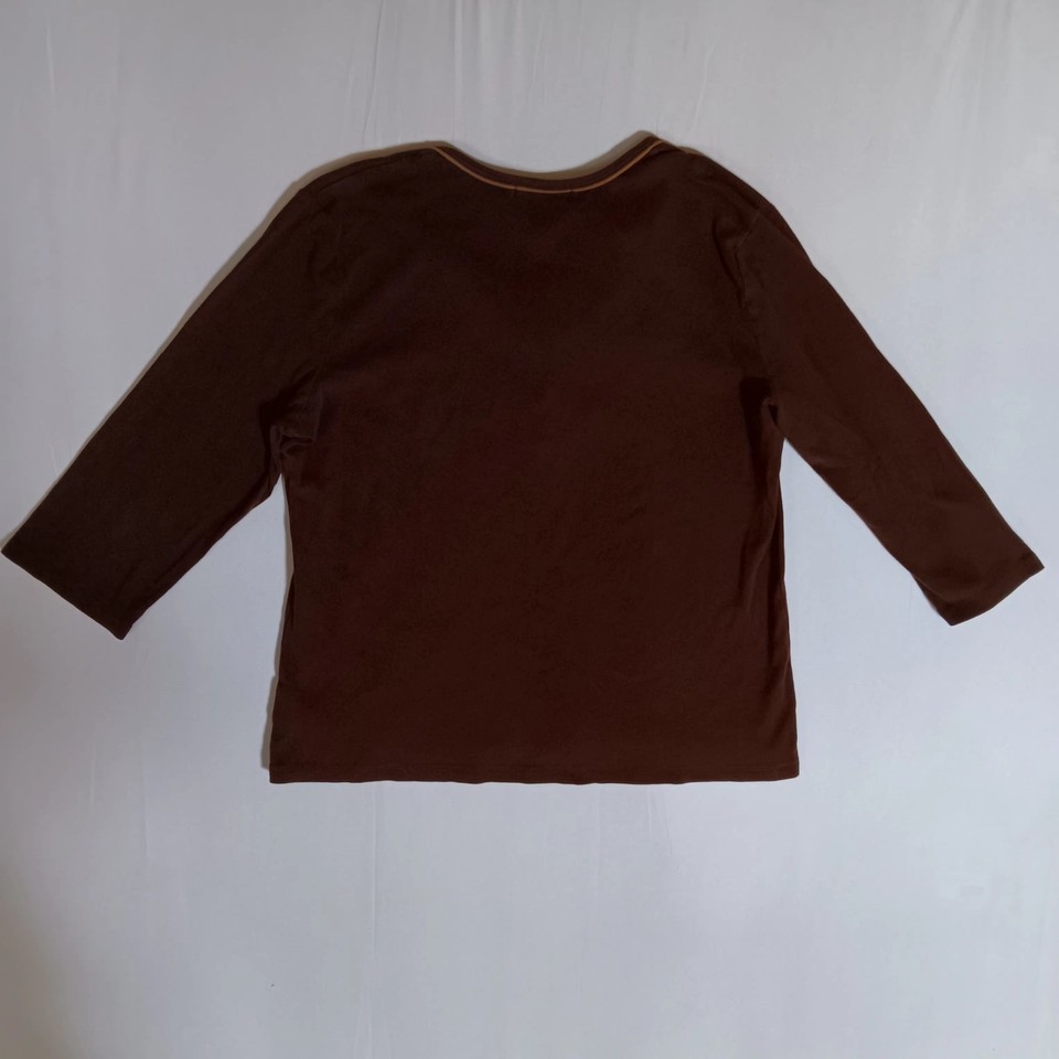 LAUREN RALPH LAUREN Women's XL Long Sleeve Top Brown 3 Button Zip Neck