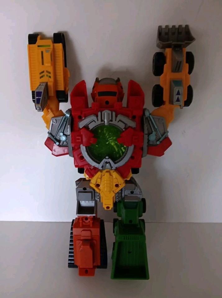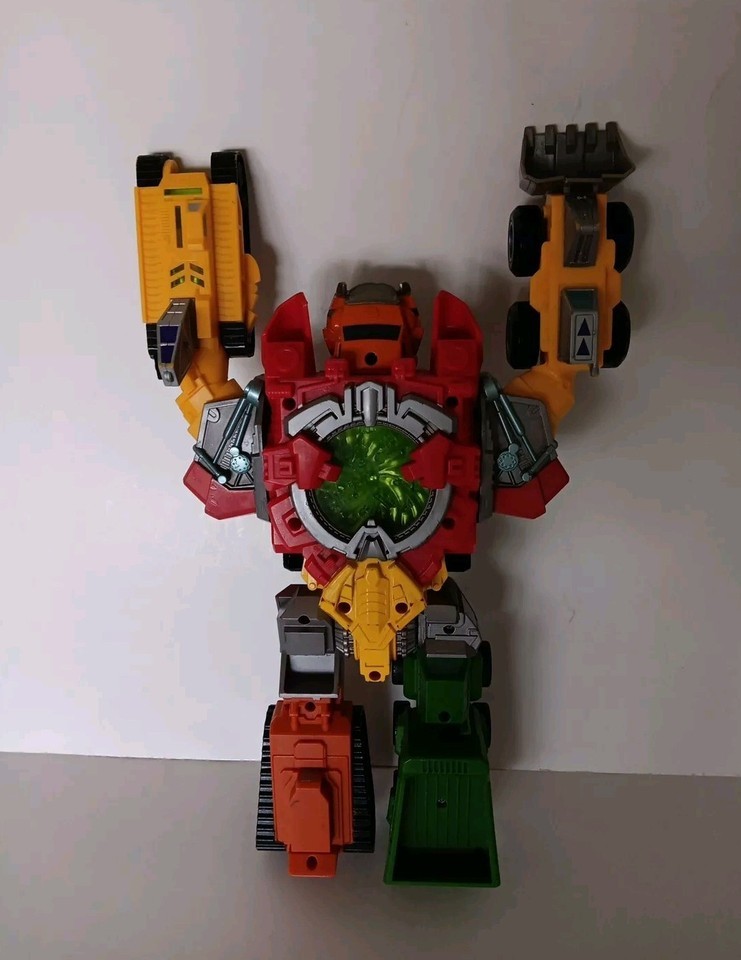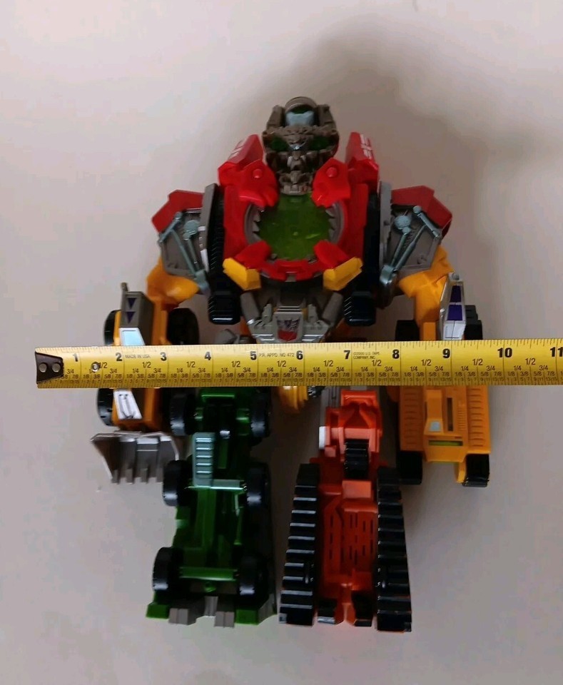 This Transformer Construction Devastator action figure is a must-have for any fan of the franchise. Standing at approximately 12 inches tall, this plastic toy features the ability to transform into different forms, making it a great addition to any action figure collection. The figure is based on the character from the Transformers movie and the TV show. Unfortunately, this listing does not include all the accessories necessary for the figure to be complete. However, it is still a great purchase for anyone looking to add to their collection or for those who are fans of the Transformer franchise. This is a pre-owned item with normal wear. See Pictures NO ACCESSORIES WITH THIS ITEM!