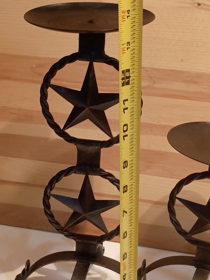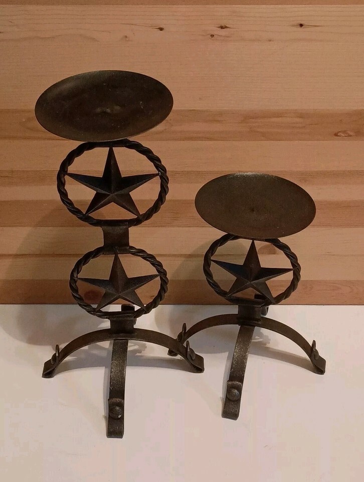Candle Holders Pillar Star Texas Western 13.5" And 9" Tall Decorative Set of 2