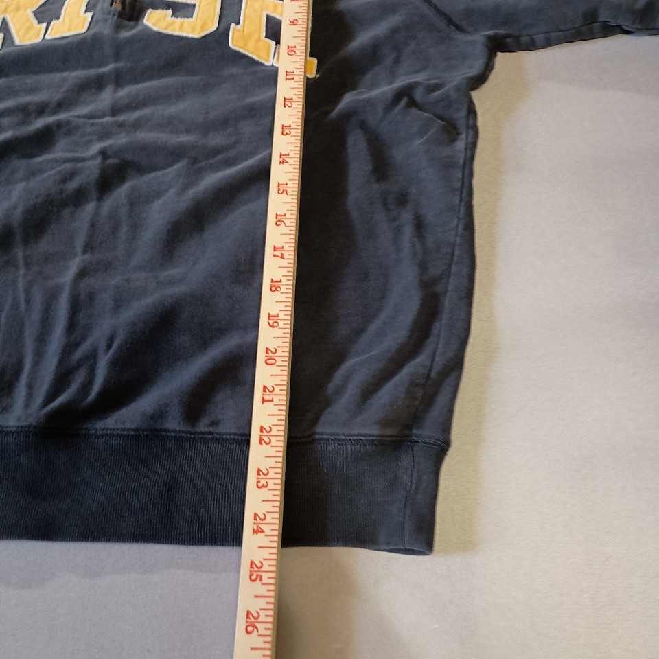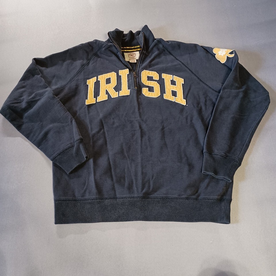 The 47 Irish 1/4 Zip Navy blue with yellow letters pullover sweatshirt in size L is a stylish and comfortable piece of fan apparel suitable for men. Featuring the iconic Irish logo, this shirt is perfect for football fans looking to show their support during the regular season. Made by the reputable brand ?47, this black sweatshirt is a must-have for any Irish football enthusiast. Good condition.