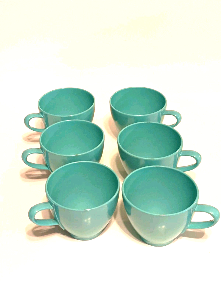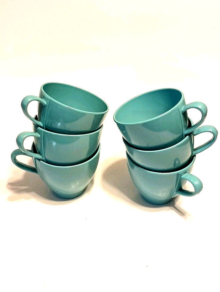 Vintage Prolon Melmac Coffee Tea Cup # 7203 Set Of 6 Turquoise Mid 20th Century