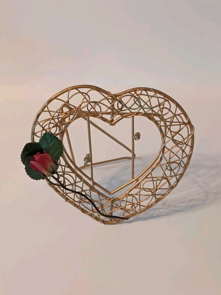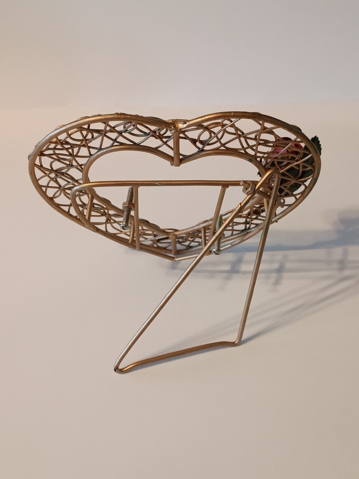 Picture Frame Heart Shaped Gold Metal And Wire Freestanding Decorative Design
