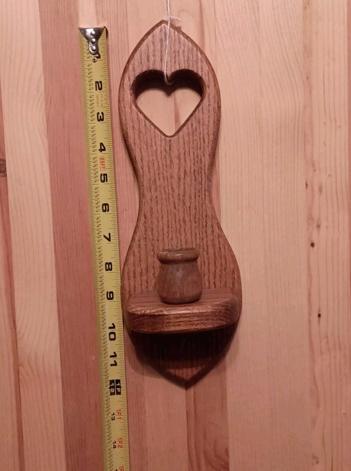 Vintage Oak Wood Wall Sconce Heart Cutout 12" Decorative Country Farmhouse