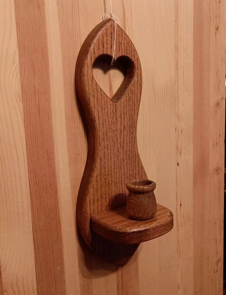 Vintage Oak Wood Wall Sconce Heart Cutout and similar items