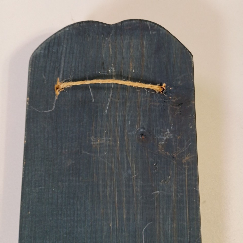 The Notepad Holder BAA, BAA, BAA Wall Hanging in Primitive Country Blue with Heart is a charming and vintage-inspired piece perfect for farmhouse-style decor. Made of wood, the rectangle-shaped wall hanging features a heart pattern and blue color scheme. Ideal for organizing notes. This unique item adds a touch of rustic charm to any kitchen or home space. The thoughtful design and vintage appeal make it a standout piece for collectors or those looking to add a touch of country flair to their living space. Normal wear. Scratches, see pictures. Sizes are approximate.