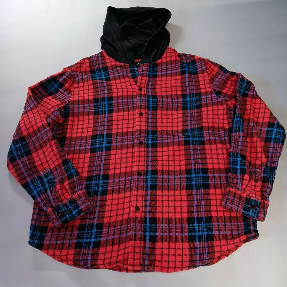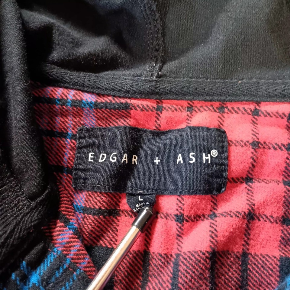Edgar + Ash Button Up Long Sleeve Hoodie Shirt Jacket Mens Size L Red Plaid