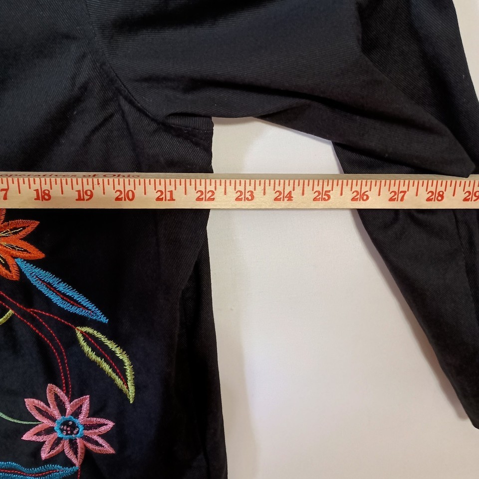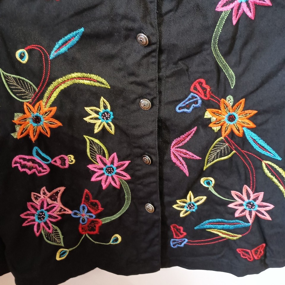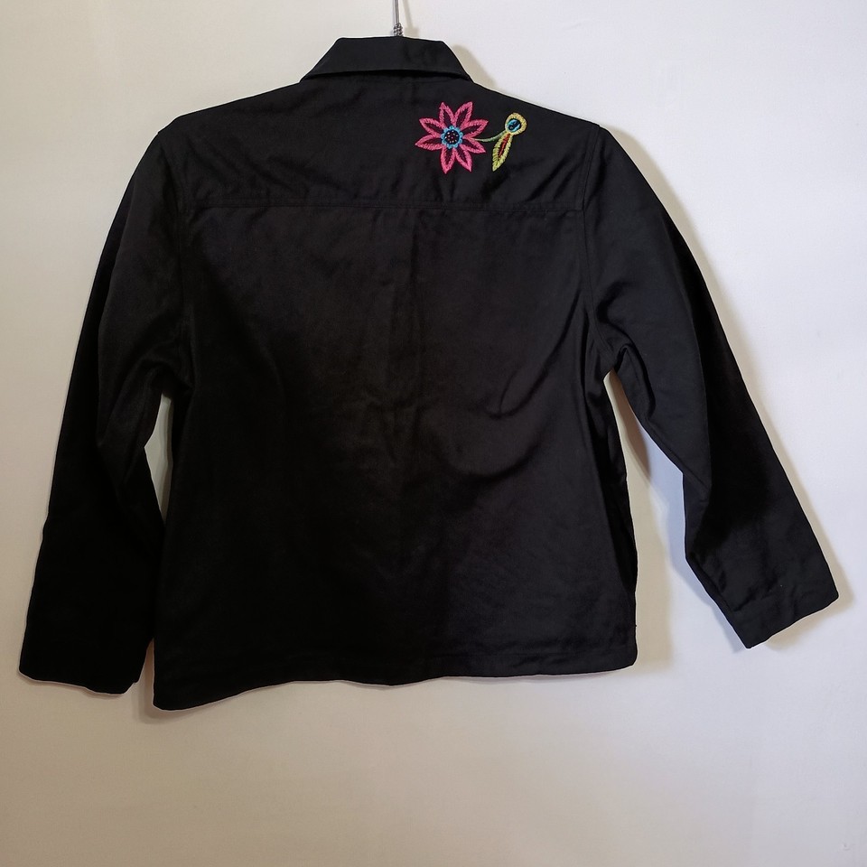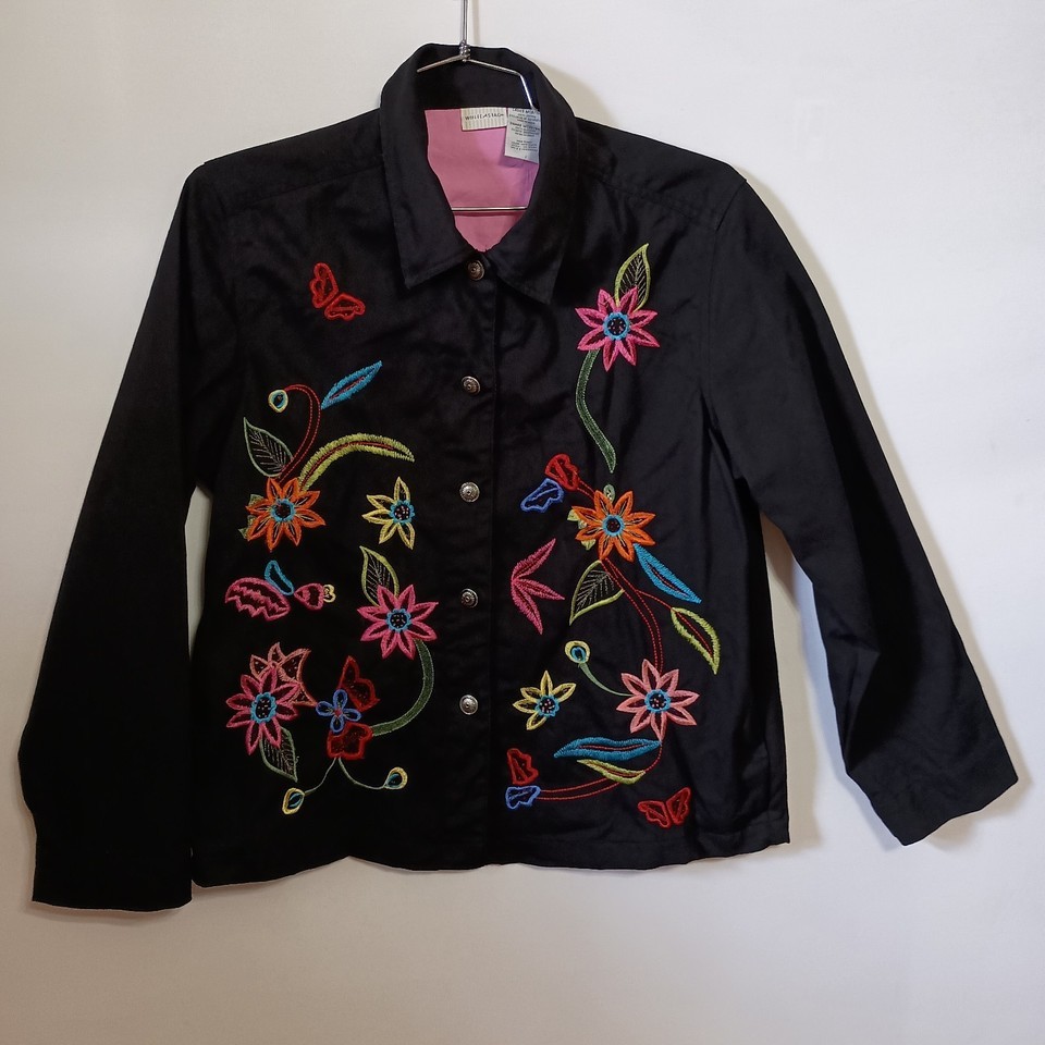 White Stag Ladies Jacket/Top Size M (8-10) Rich Black w/Floral Embroidery Boho