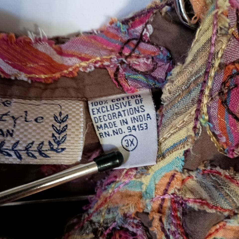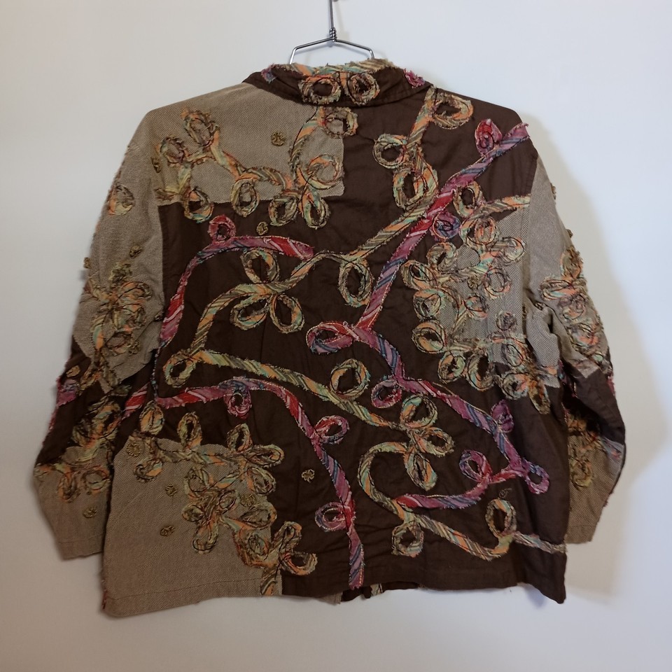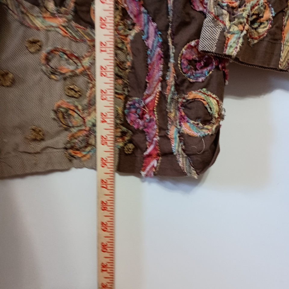 This Vintage Life Style Woman Button Up Jacket in size 3X features a unique brown color with multicolor embroidery, adding a fun and colorful touch to your wardrobe. Made from 100% cotton with a mid-length design and long sleeves, it is perfect for casual occasions during the fall and spring seasons. The classic fit and button closure make it a timeless piece that can be machine washed for easy care. Perfect for women looking for a stylish and comfortable jacket with a vintage flair. Normal wear.