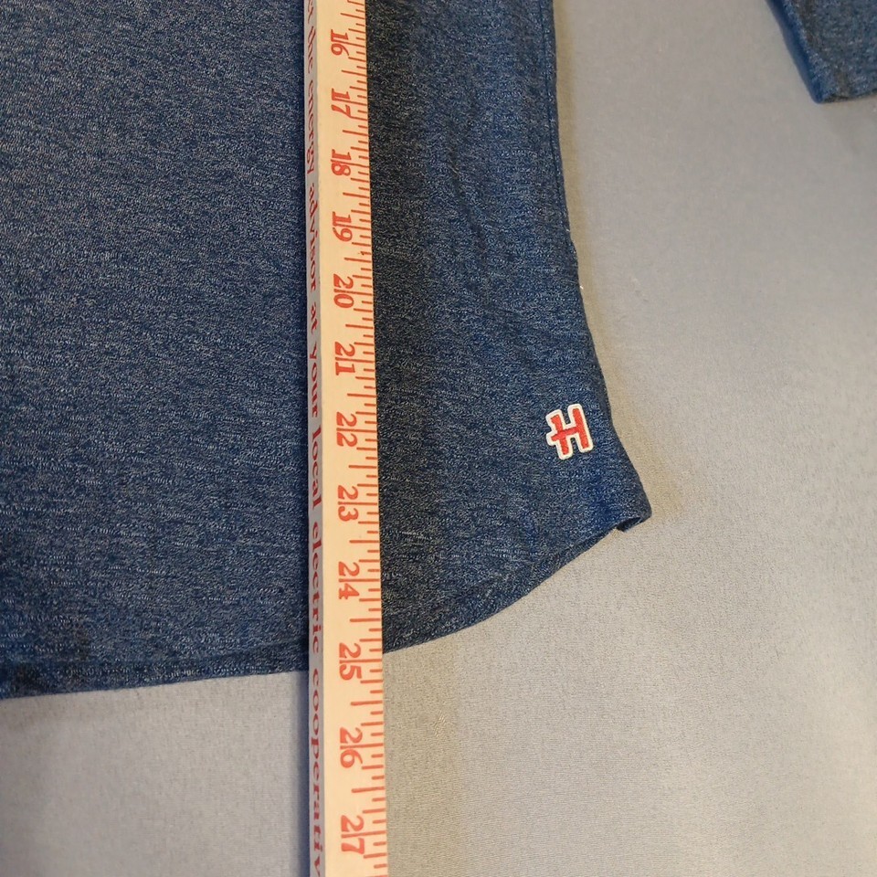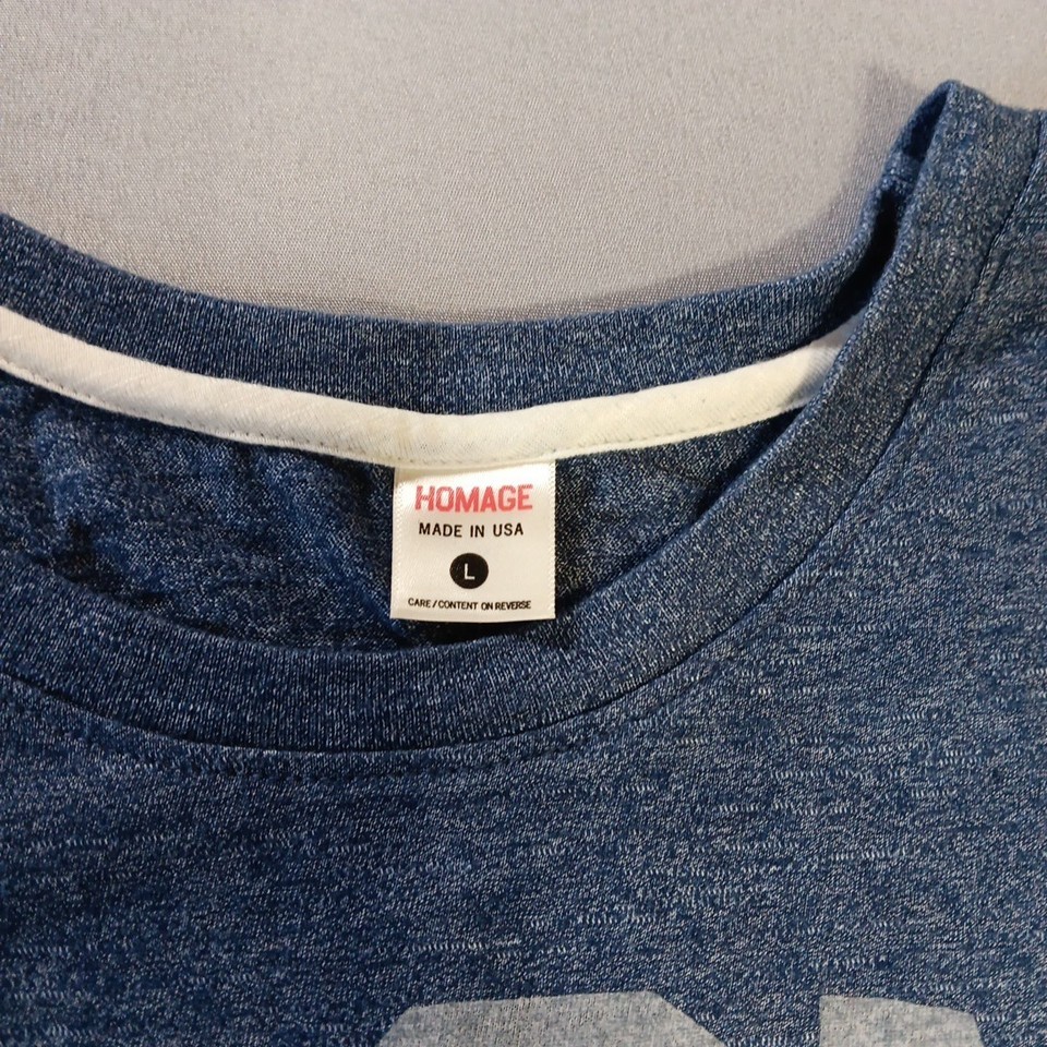 The Homage BOOM Hockey T-Shirt in women's size L features a retro-inspired design inspired by Ohio's Boom City. With a regular fit and blue color, this T-shirt is perfect for sports enthusiasts, specifically hockey fans. The unisex adults t-shirt showcases a unique theme that pays homage to the city's history and passion for the sport of hockey. Good condition.