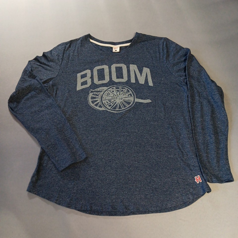 Homage BOOM Hockey T-Shirt Womens Size L Blue Gray Ohio Retro Inspired Boom City