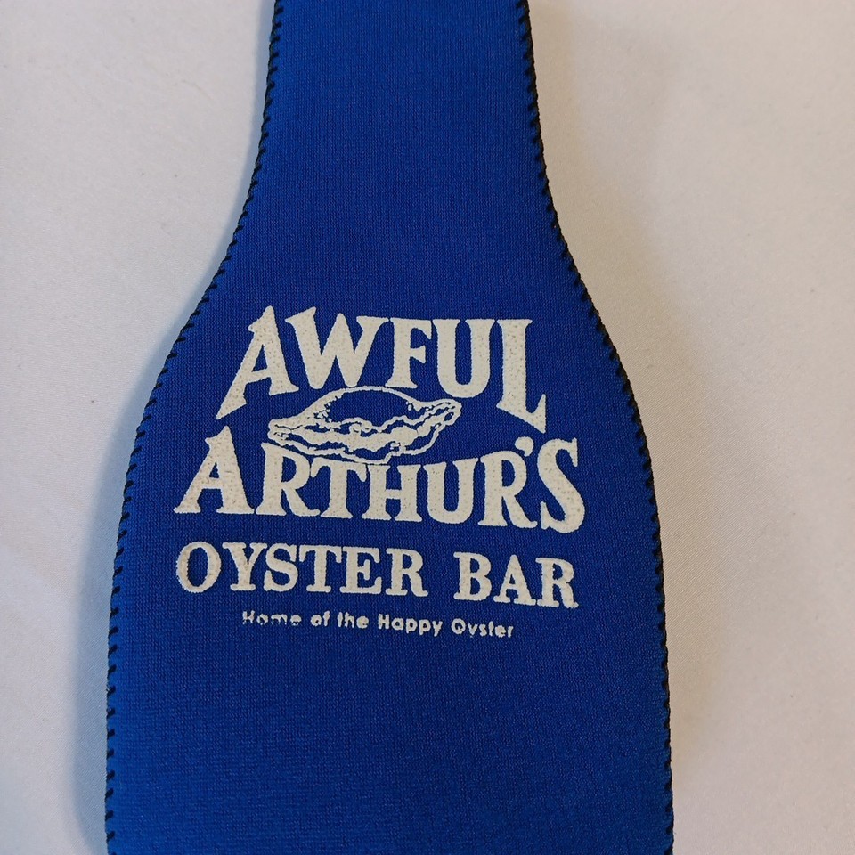 Koozie Neoprene Bottle Beer Cooler Zipper Blue White AWFUL ARTHURS OYSTER BAR
