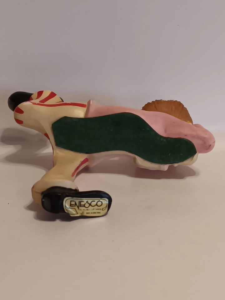 This vintage plastic clown figurine is a small, approximately 4.25-inch shelf sitter designed in the 1970s by Enesco in Hong Kong. The colorful multicolor clown features a classic 1970s style and is part of the Stanhome collection, perfect for any room in the house. This original figurine showcases a painted finish and is boxed for display, making it a charming addition to any circus-themed decor or collection. Normal wear. See Pictures