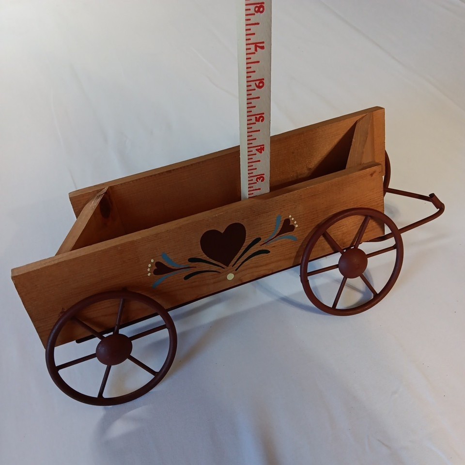 Wooden Wagon Rustic Primitive Wood Metal Folk Art Country Painted Heart Pattern