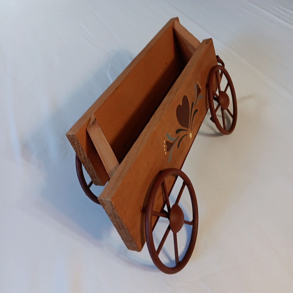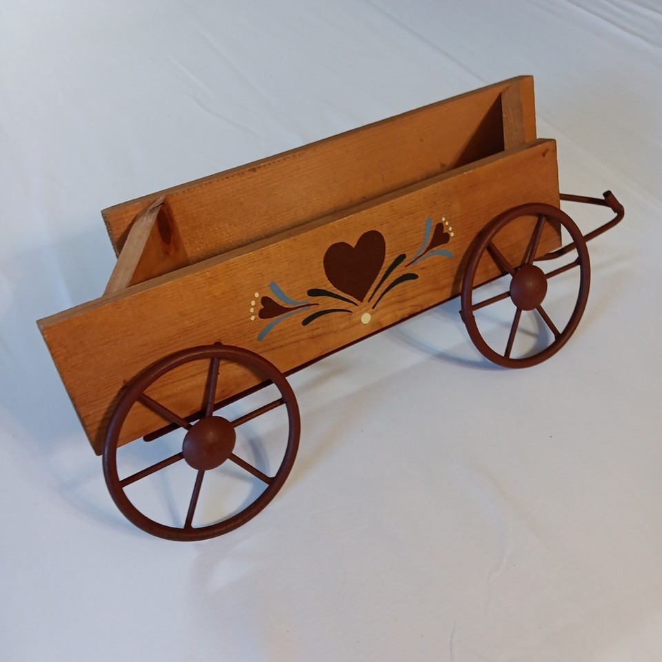 Crafted with a passion for rustic aesthetics, this Wooden Wagon boasts a primitive charm that will transport you back to a simpler time. Exquisitely designed with a brown color palette and an intricate heart pattern, this piece of folk art is a testament to country living and the beauty of folk art country painted heart. Whether you're a collector of unique decorative items or looking to add a touch of nostalgia to your home. Its style is perfect for those who appreciate a rustic and primitive look. Normal wear.