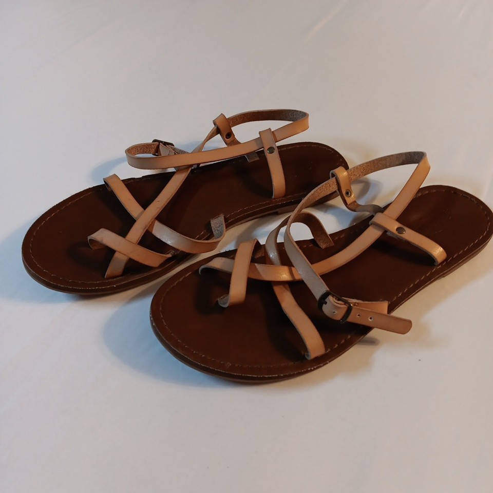 Sandals Women’s Sz 8W Toe Wrap Thong Strappy Tan Brown Universal Thread Casual