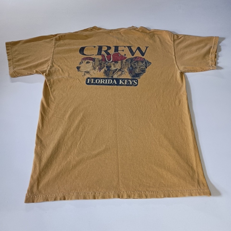 CREW Florida Keys T-shirt Men's Medium Butterscotch Yellow Graphics Front & Back