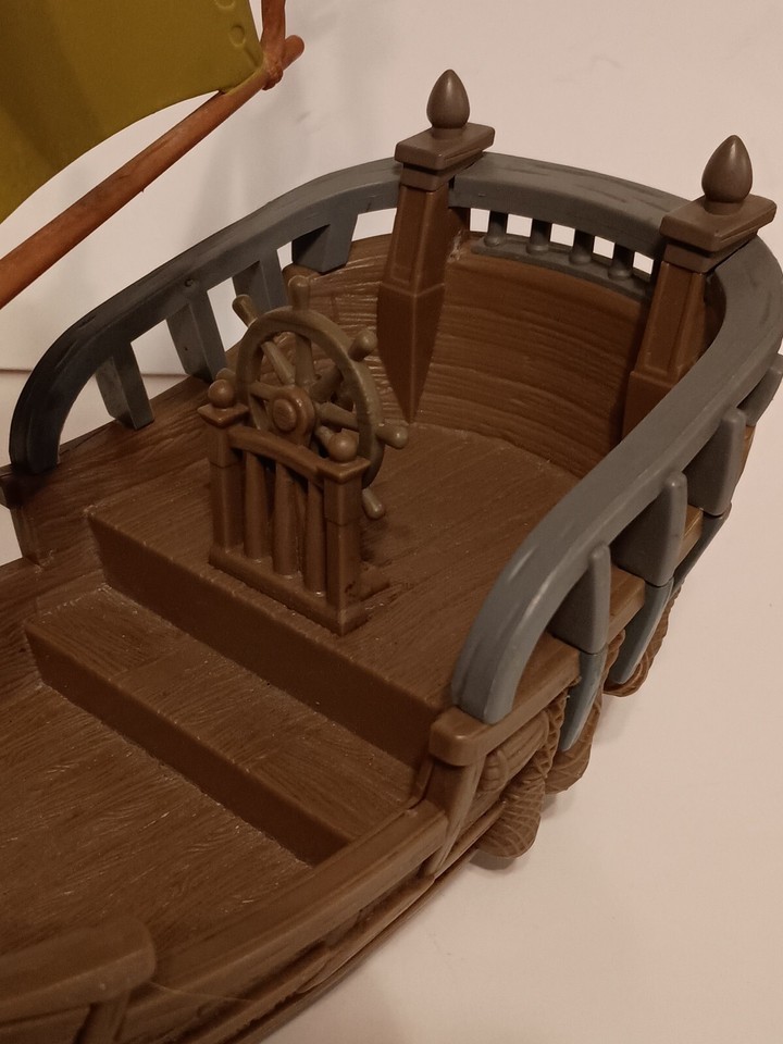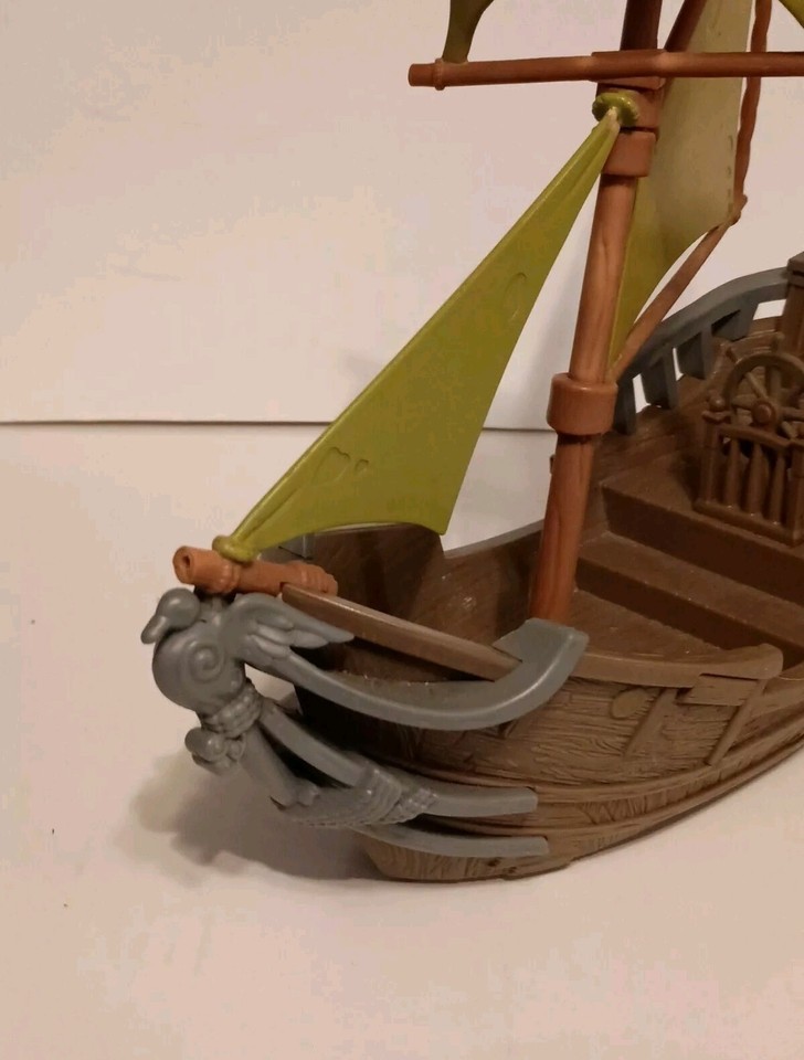 The product is an incomplete set of Pirates of Caribbean Jack's Ship from the Dead Men Tell No Tales movie. This toy ship features a multicolor design and is made of plastic, measuring approximately 11.5" in length. Manufactured in 2017 by Spin Master, this Disney-themed toy is perfect for children aged 5-7 years who enjoy imaginative play with pirate-themed vessels. Ideal for fans of the Pirates of the Caribbean franchise, this toy ship is a must-have for young enthusiasts looking to add to their collection. SHIP ONLY. Normal wear.