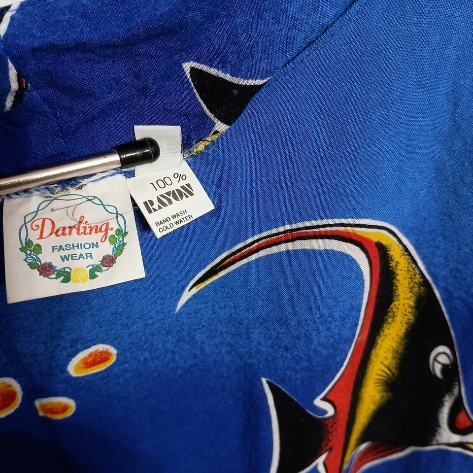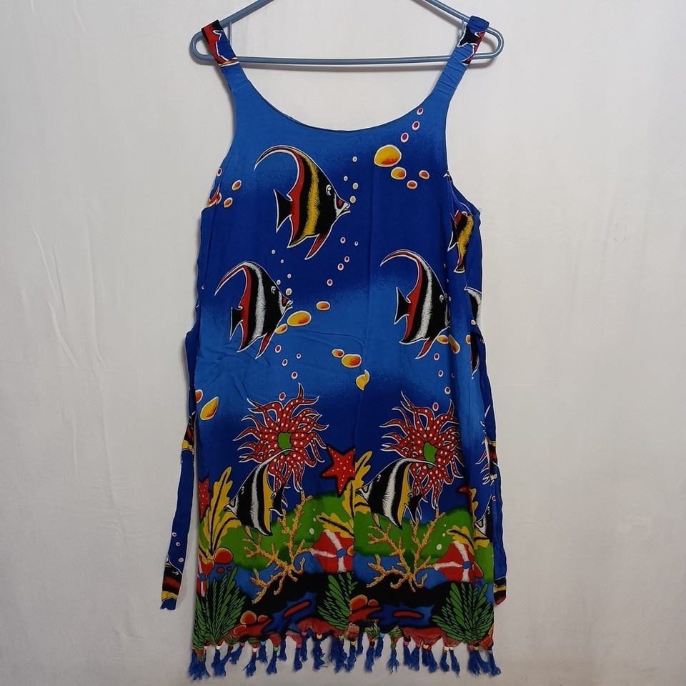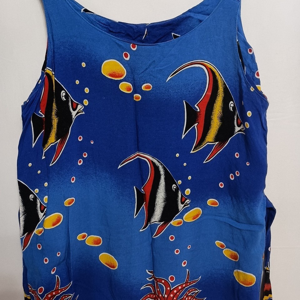 Darling Fashion Wear Fish Print Sun Dress Pullover Sleeveless Blue Sz. M Chic