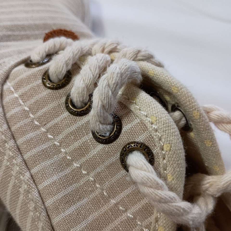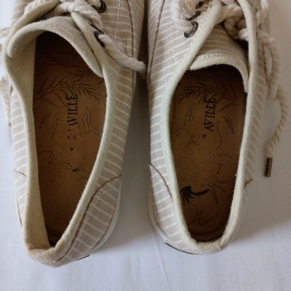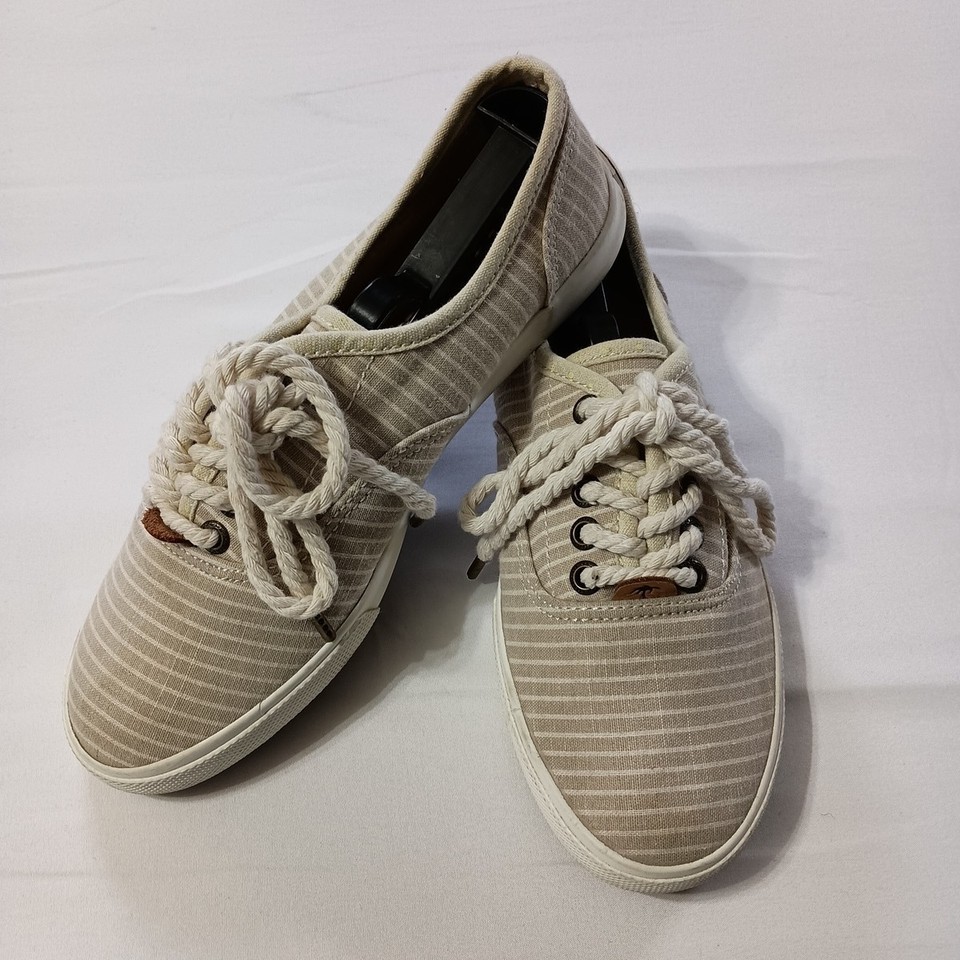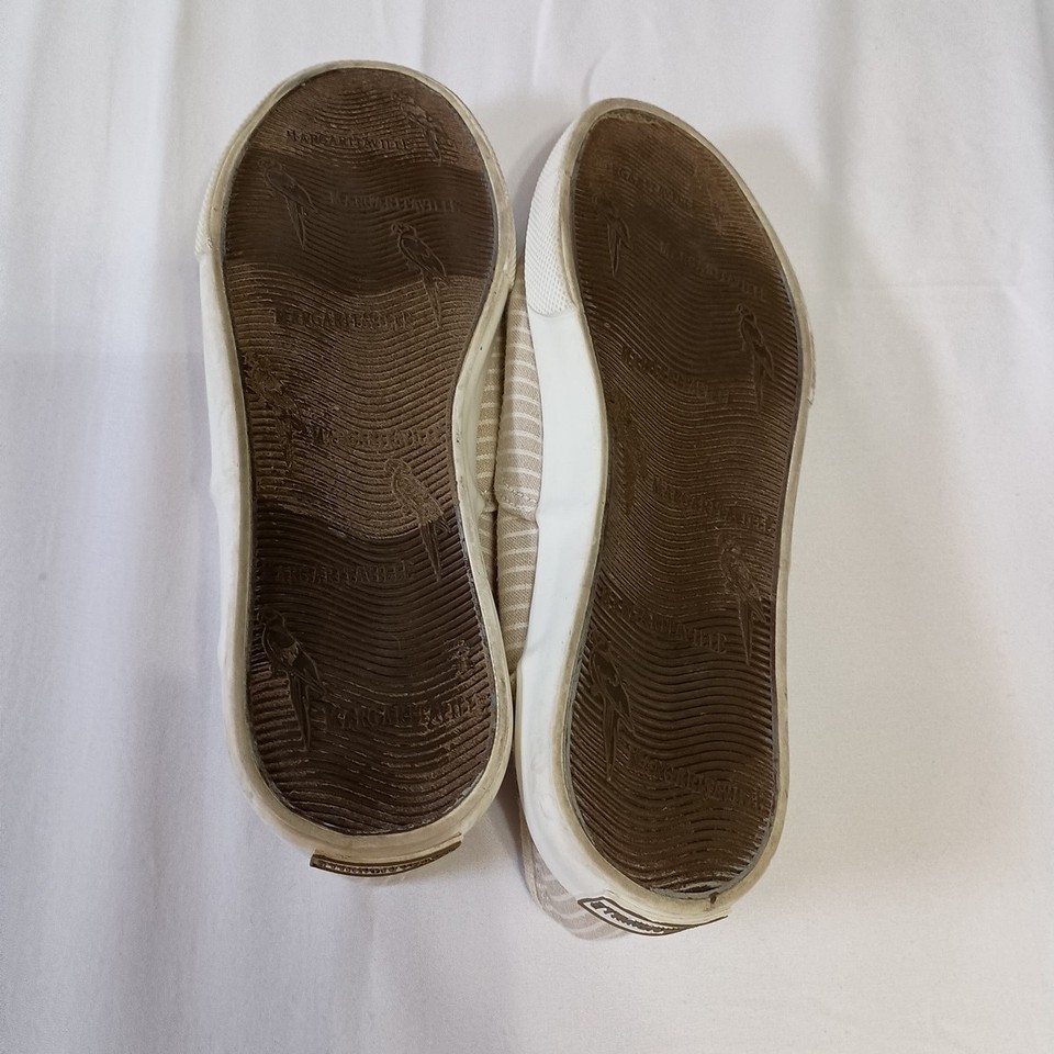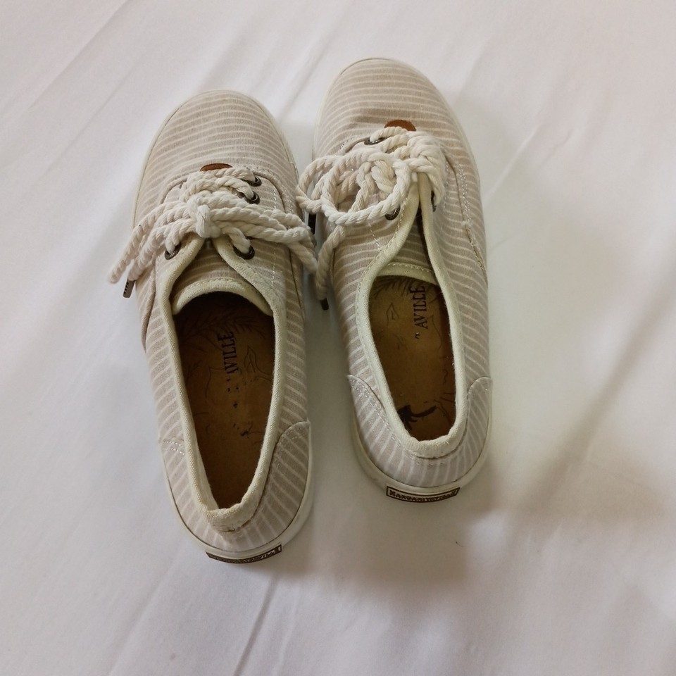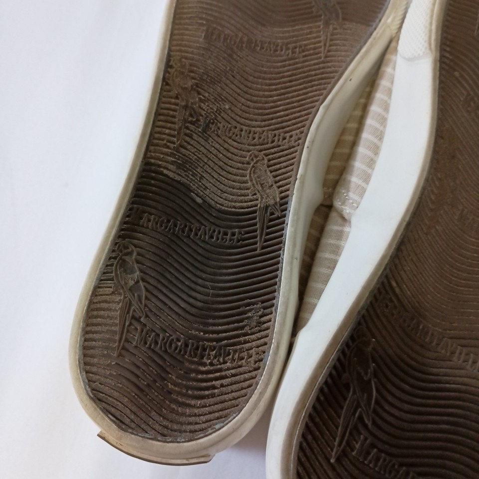 Women’s Margaritaville Shoes Size 8.5 Lt Beige White Stripes Lace Up Palm Tree