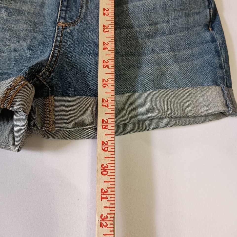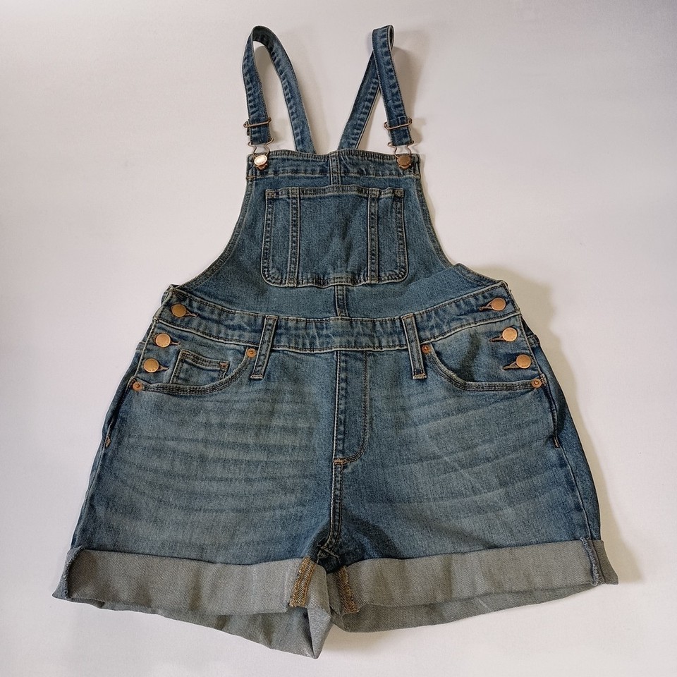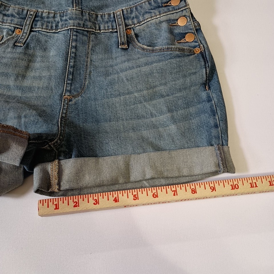 The Universal Thread Women's Size 2/26R Overall Jean Shorts are a stylish and versatile addition to any wardrobe. Made of a comfortable denim fabric blend, these utility-style shorts feature a flattering fit in a classic blue color. Perfect for casual occasions during the summer, fall, or spring, these shorts have a button closure, 5-pocket design, and a lightweight wash. The easy care and machine washable material make them convenient for everyday wear, while the cowgirl theme adds a touch of Western flair to your outfit. Ideal for activities like walking, beach outings, or school, these stylish shorts are a must-have. Normal wear.