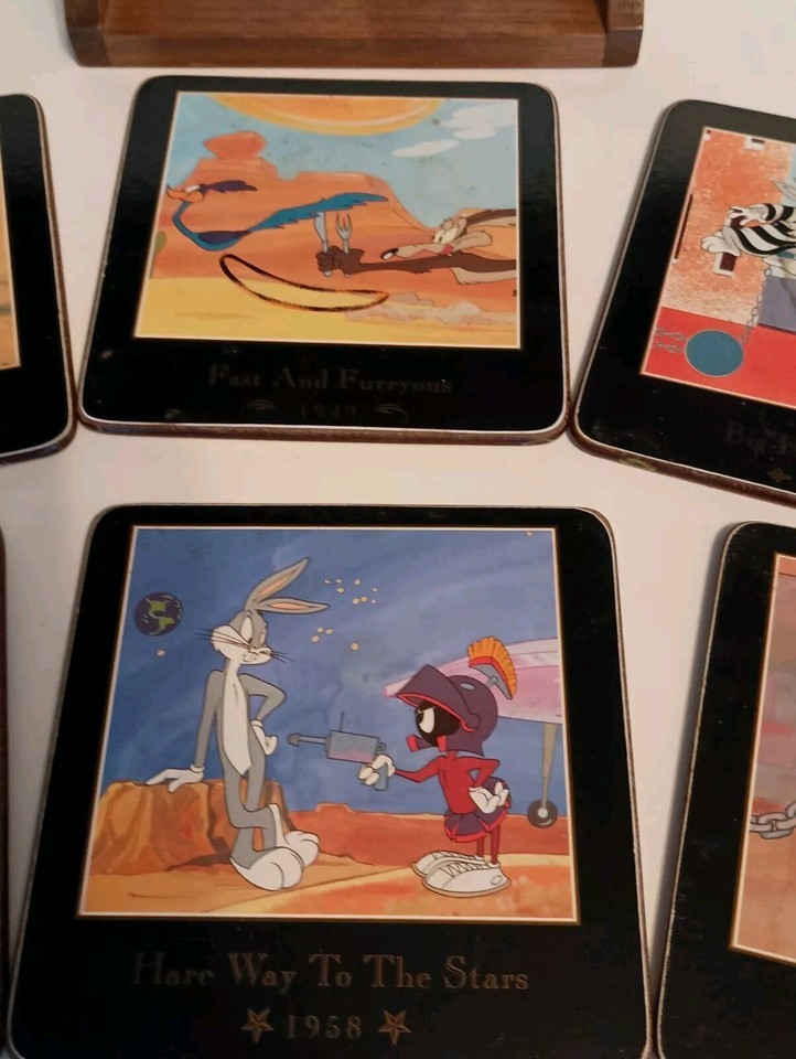 1993 Looney Tunes Warner Bros Drink Coasters w/Holder Bugs And Friends Vintage