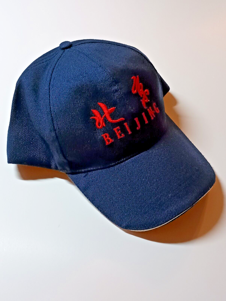 Beijing Baseball Style Cap/Hat Dark Blue One Size Red Embroidered Adjustable