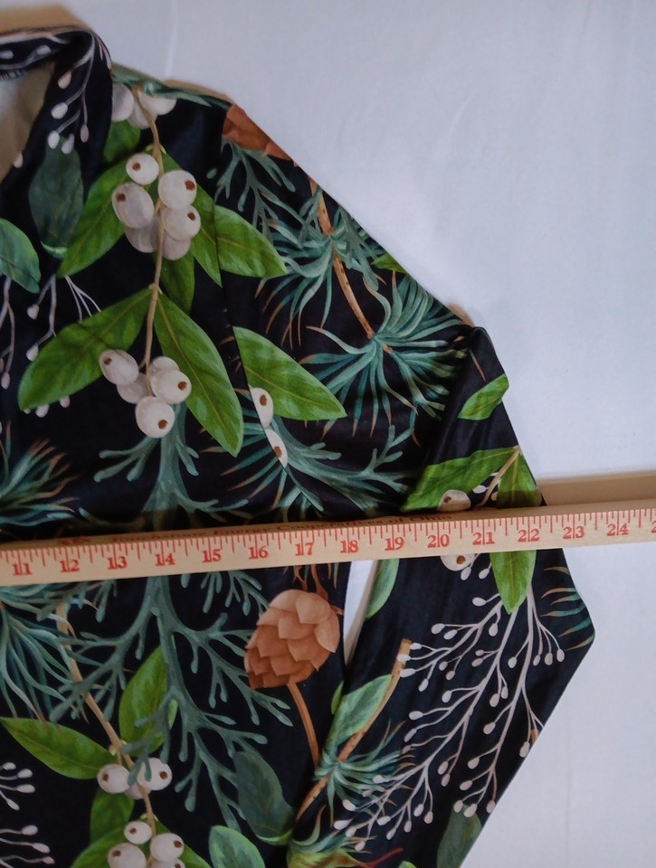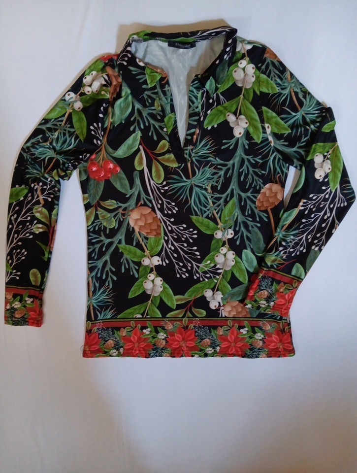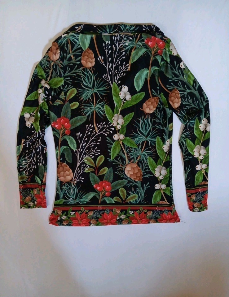 Love U Dear Boho Women's Floral Blouse Size L Long Sleeve Black Green And Red