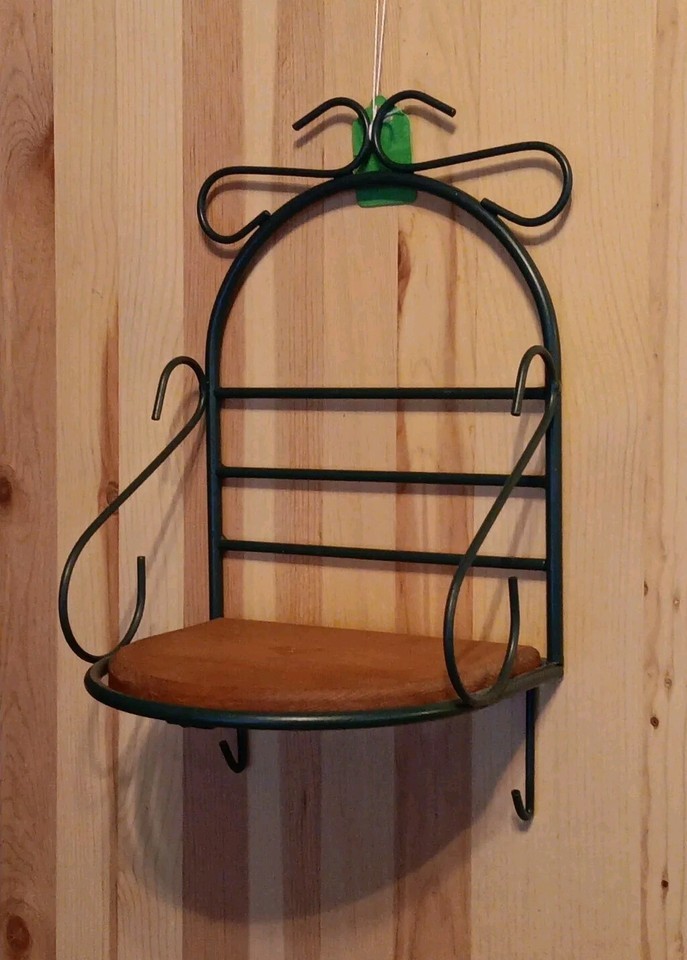 Hanging Wall Shelf Wood With Green Metal Scroll Unique Decor
