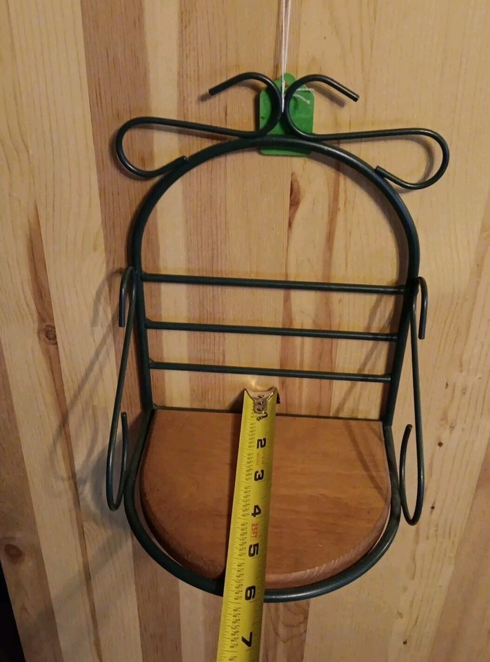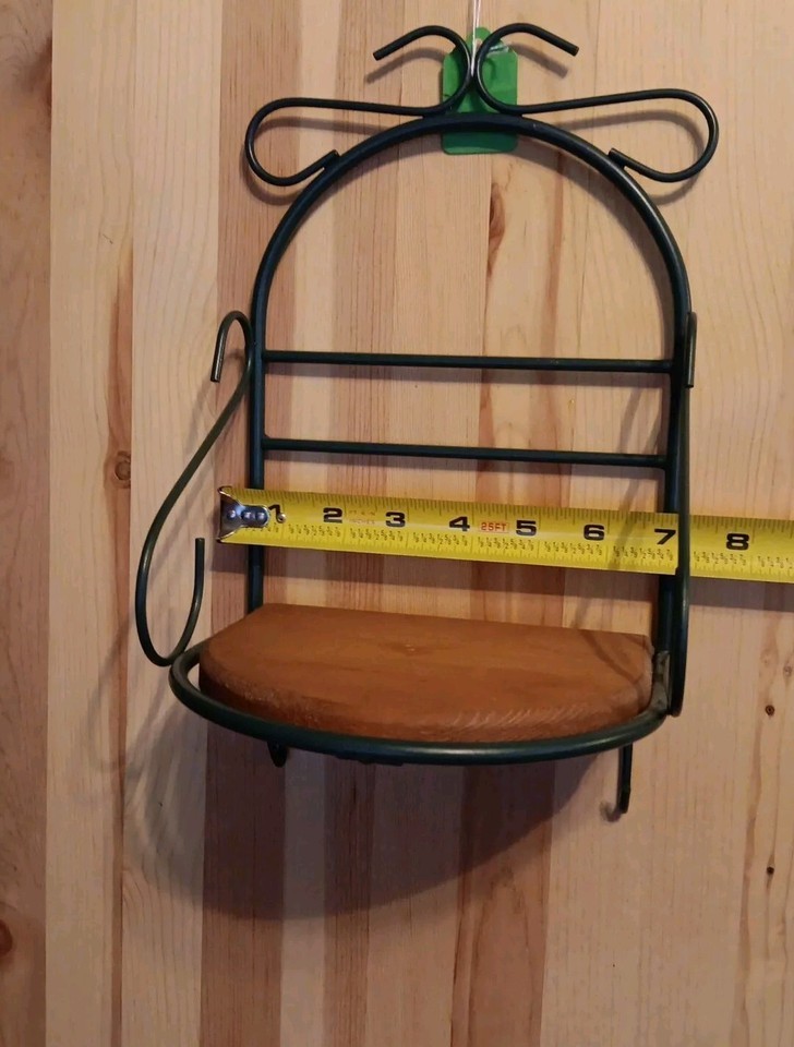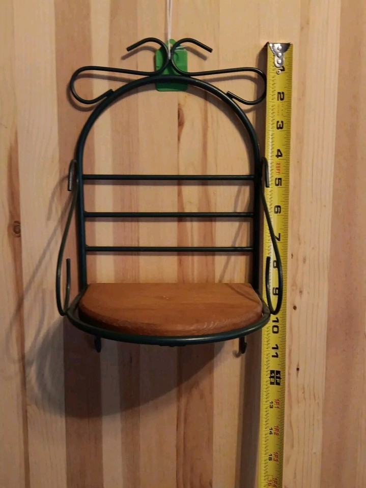 Measuring approximately 5 3/4" in length, 6 3/4" in width, and 11 3/4" in height, this hanging wall shelf is designed for easy installation and requires no assembly. It will need a nail or screw to hang, making it a convenient addition to your home decor. This is a pre-owned item with normal wear. See Pictures