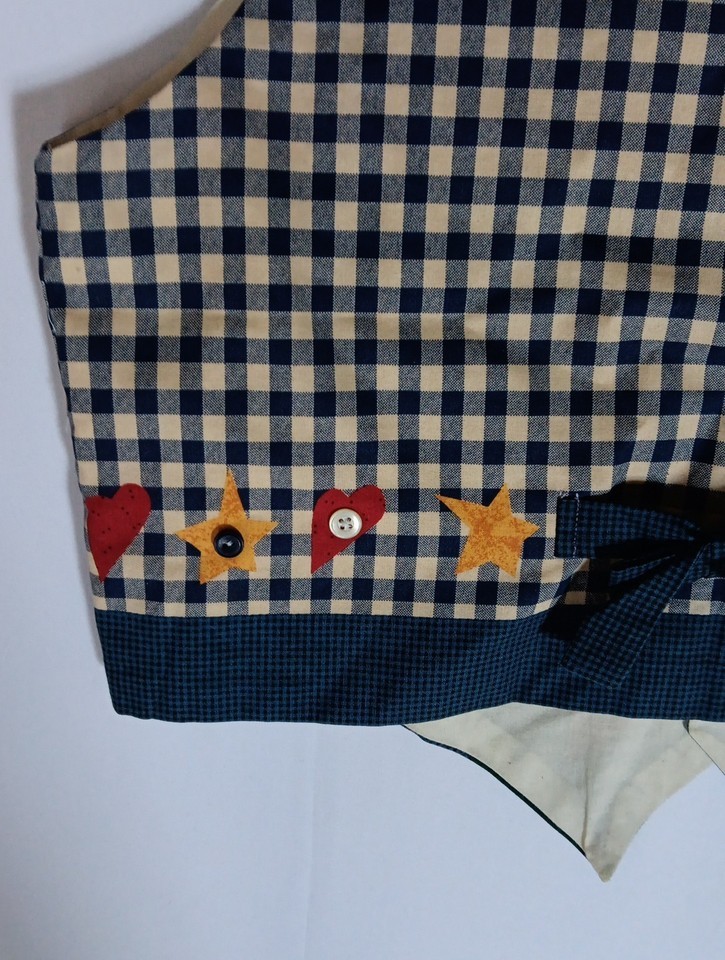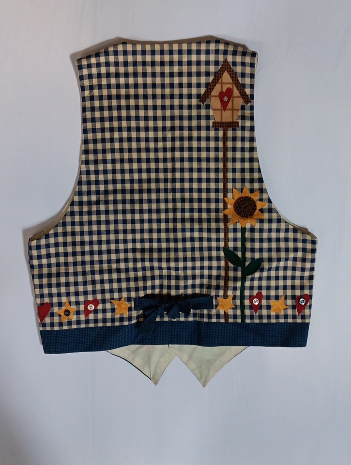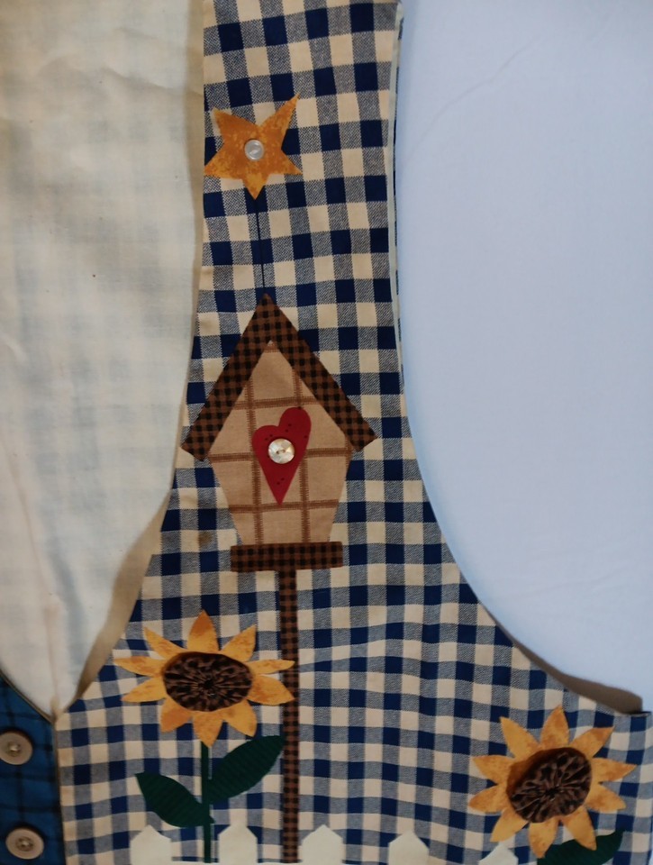Vintage Handcrafted Sunflower Vest Sz. S-M Blue White Checkered Farm Cottagecore