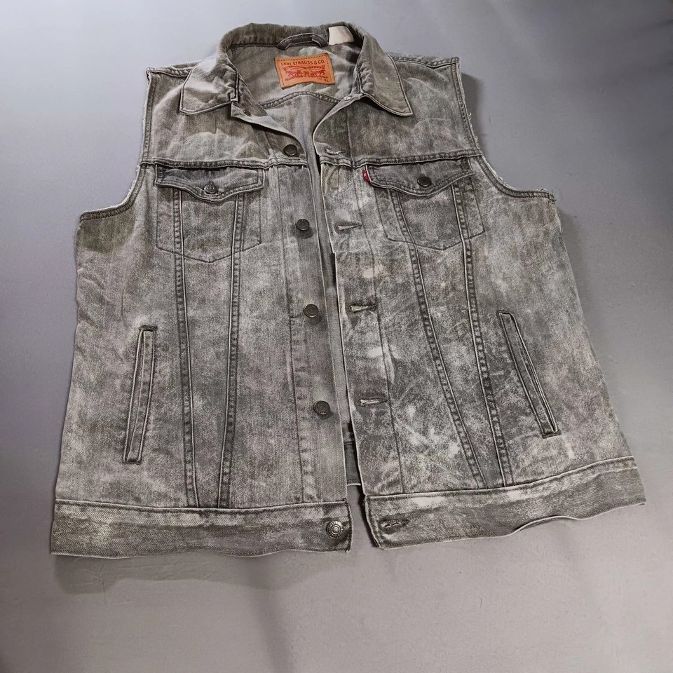 Levi's Denim Vest Womens XL Gray Acid Wash Distressed Look Button Grunge Biker