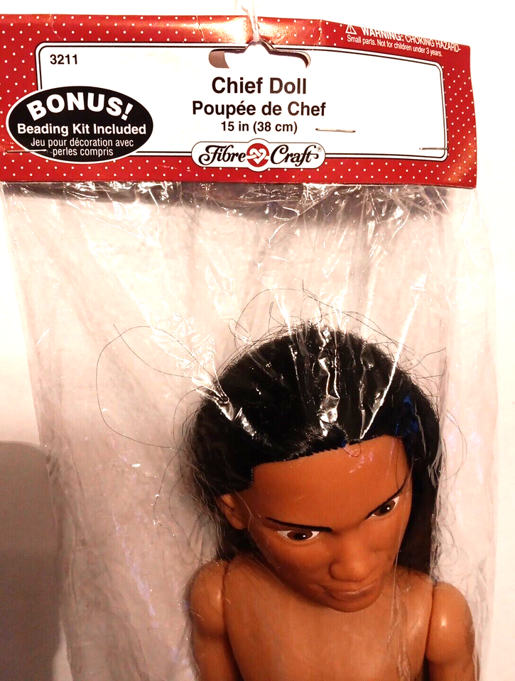 Vintage Fibre Craft 15" Native American Indian Chief Doll Beading Kit Included