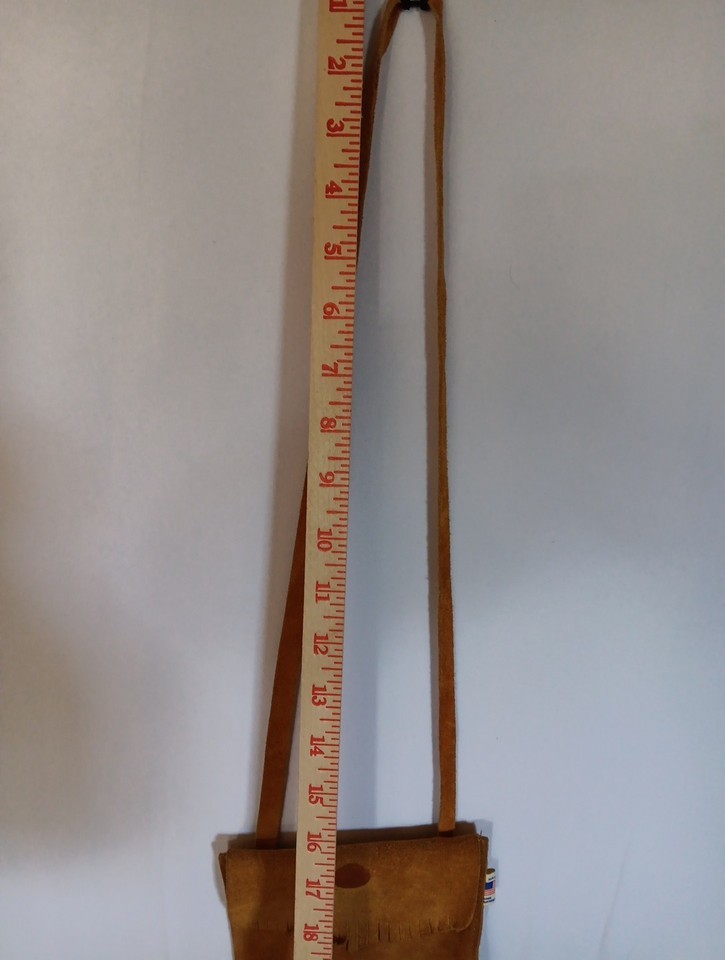 The Vintage Bloom Brothers Sude Leather Fringe Shoulder/Crossbody Bag Pouch is a stylish and unique accessory for women. Made in the USA by the Bloom Brothers Co., this small-sized bag features a solid brown exterior with gold hardware accents and fringe detailing. The flap closure and suede lining add a touch of luxury to this vintage piece, making it a fashionable and functional addition to any wardrobe. Whether worn as a shoulder bag or crossbody, this bag is sure to make a statement. Normal wear. All sizes are approximate.
