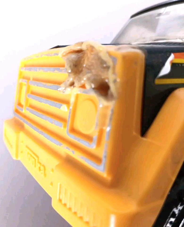This vintage Tonka Stone's Gravel Quarry truck cab NO BED is a great addition to any construction equipment collection. The yellow, black, and red color scheme adds a pop of color to any display. The truck is made of metal and plastic materials and has some damage, but it is still a great find for collectors. The cab has a large scale and is from an unknown. This truck is perfect for those who are looking for a unique and rare item to add to their collection. This is a vintage item with normal wear.See pictures.