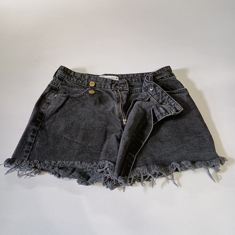 Zara Women's Black Cut Off Denim Bootie Shorts High Waisted Size M