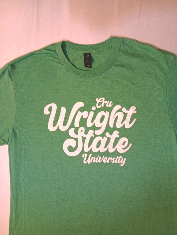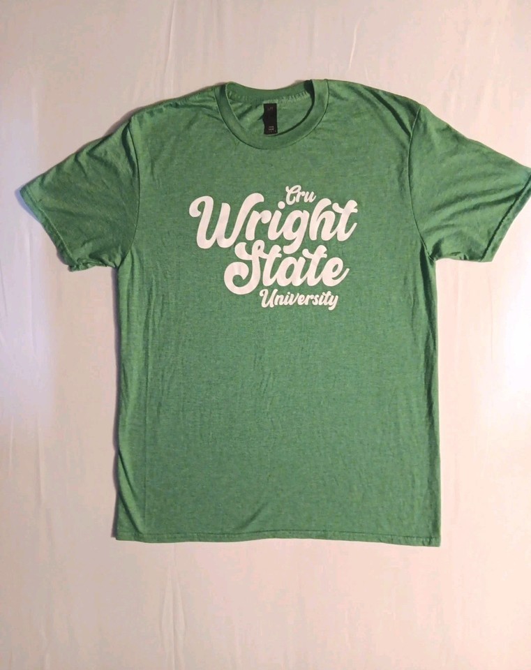 Embrace your love for Wright State University with this stylish and comfortable green T-shirt. The shirt features a white graphic print that highlights the university's name, making it a perfect gear for alumni, students, and fans. The shirt is made of a polyester cotton blend, making it lightweight and perfect for all seasons. The shirt has a crew neck and short sleeves, providing a classic and comfortable fit. It is machine washable, making it easy to care for. The retro style of the shirt adds a touch of nostalgia, making it a unique addition to any wardrobe. Get your hands on this t-shirt today! Normal wear.